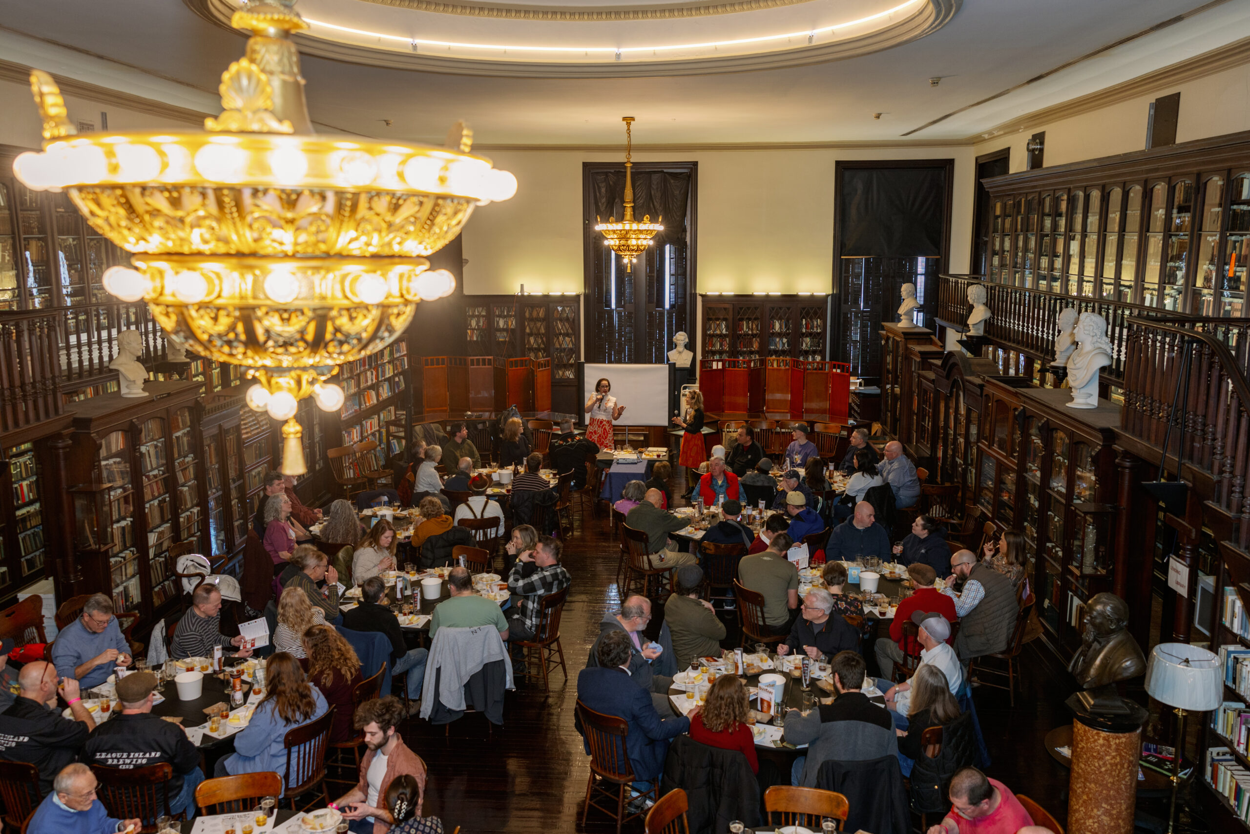 The 2024 Philly Bierfest, held at the German Society of Pennsylvania at 611 Spring Garden St. The event spans two buildings and includes a food hall, beer classes, and burlesque performances, among other things.