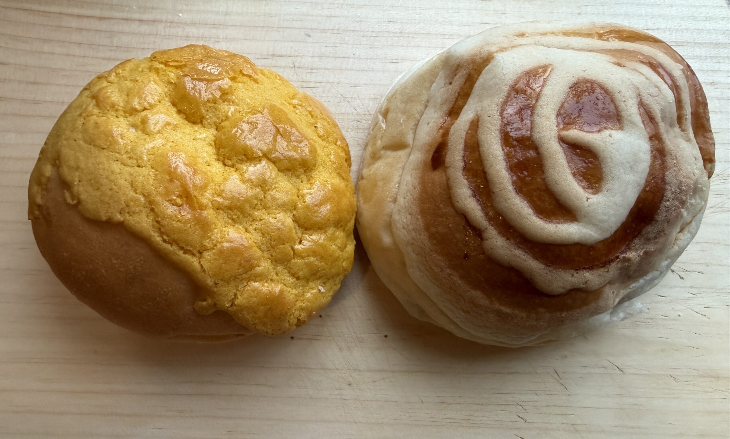 A side-by-side comparison of the “pineapple” bun and the Mexican bun at Bread Top House in Chinatown.
