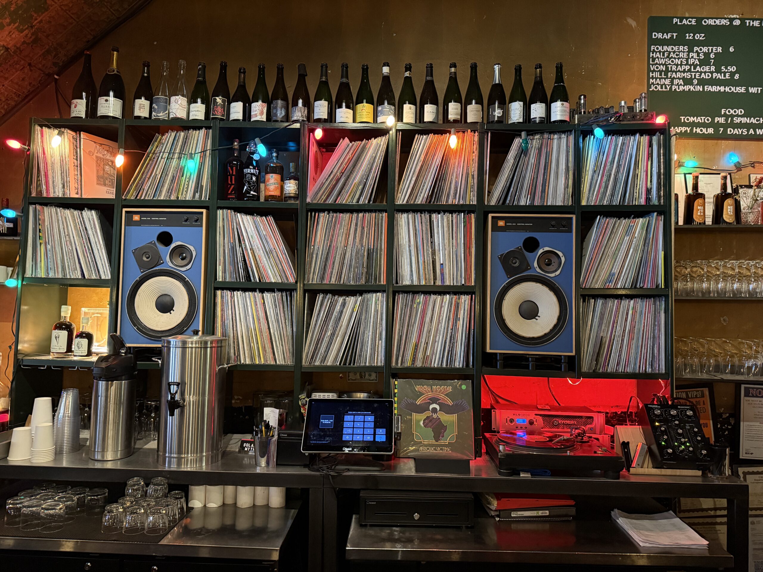 Stephen Starr’s LMNO has a listening lounge outfitted with a hi-fi sound system and record collection spanning soul, funk, disco, and Latin genres. “The focus is on immersive room sound rather than headphones — so the music feels shared, not isolated,” said Kayla Hagar, LMNO’s general manager. Programming ranges from DJ-led nights, vinyl-focused sessions, and ambient background listening. Once a week, at LMNO’s “Off the Walls” series, guests are encouraged to browse their vinyl wall and select records to be played. It draws Fishtown’s “younger creative crowd, an art and music-oriented demographic — audiophiles, record-collectors, and music lovers,” said Hagar. “Not necessarily a heavy mainstream dance-club crowd, but more niche, design-forward, scene-aware visitors.”