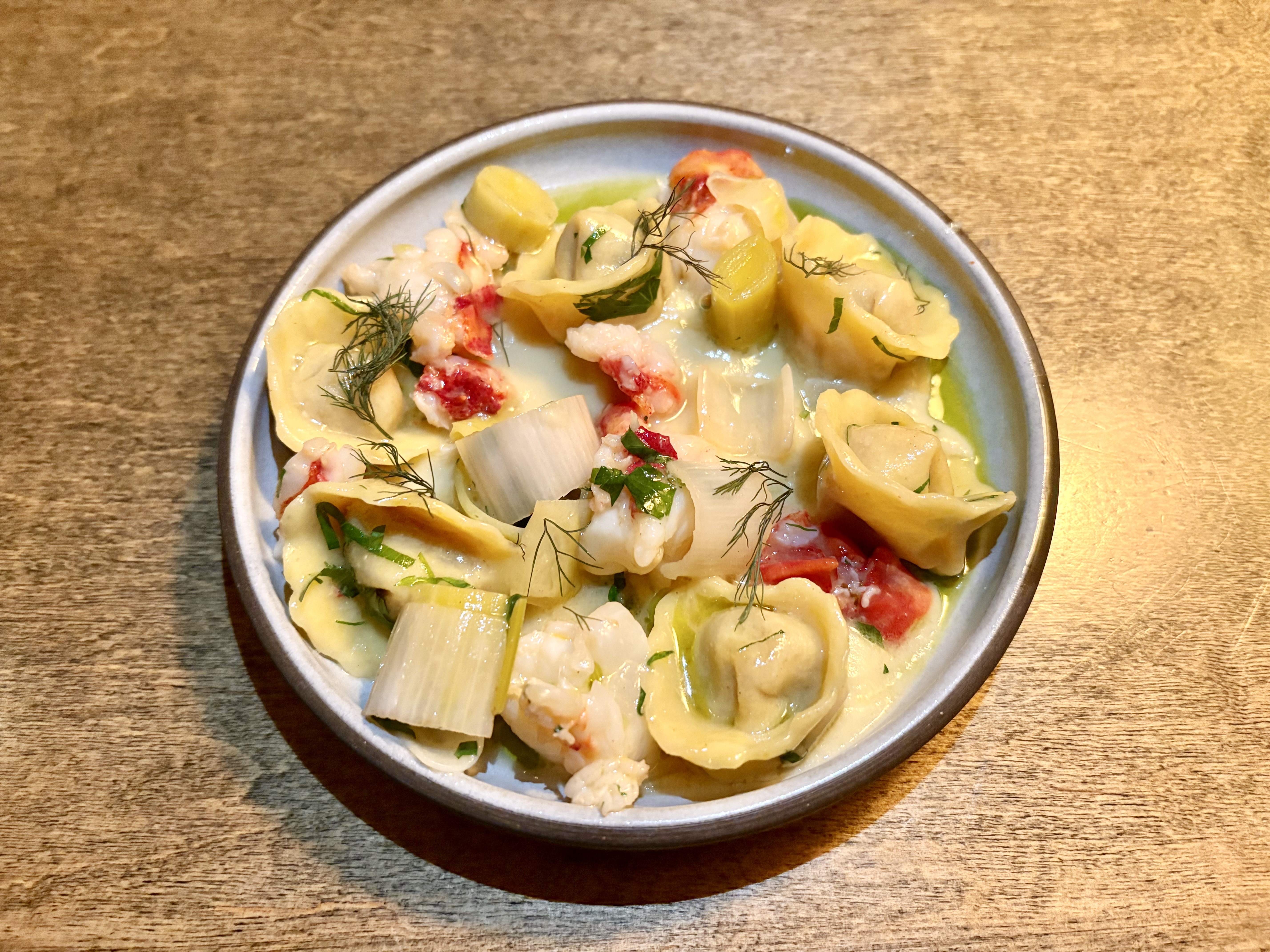 Smoked pumpkin tortellini with lobster, leeks, and fennel-tarragon butter at Southwark.