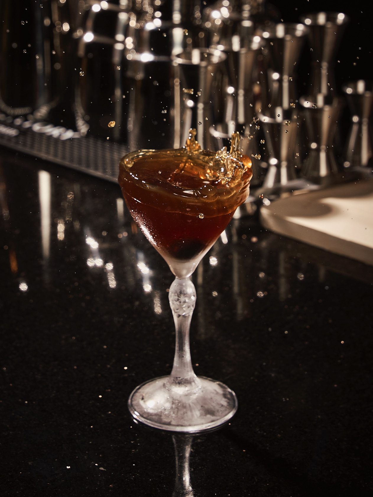 The Juban District, a take on a Manhattan, made with black walnut nocino at Almanac.