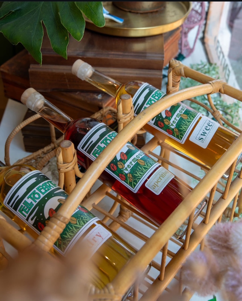 You may recognize Tim Kweeder’s name from his viral concoction, Dumpster Juice, a line of vermouths born at Bloomsday, but his making of liqueurs has come a long way. He’s the producer, bottler, salesperson, and delivery person for Fell to Earth, Philly’s first vermoutherie. It’s technically both a winery and a distillery: “The state made us get both licenses,” said Kweeder.
