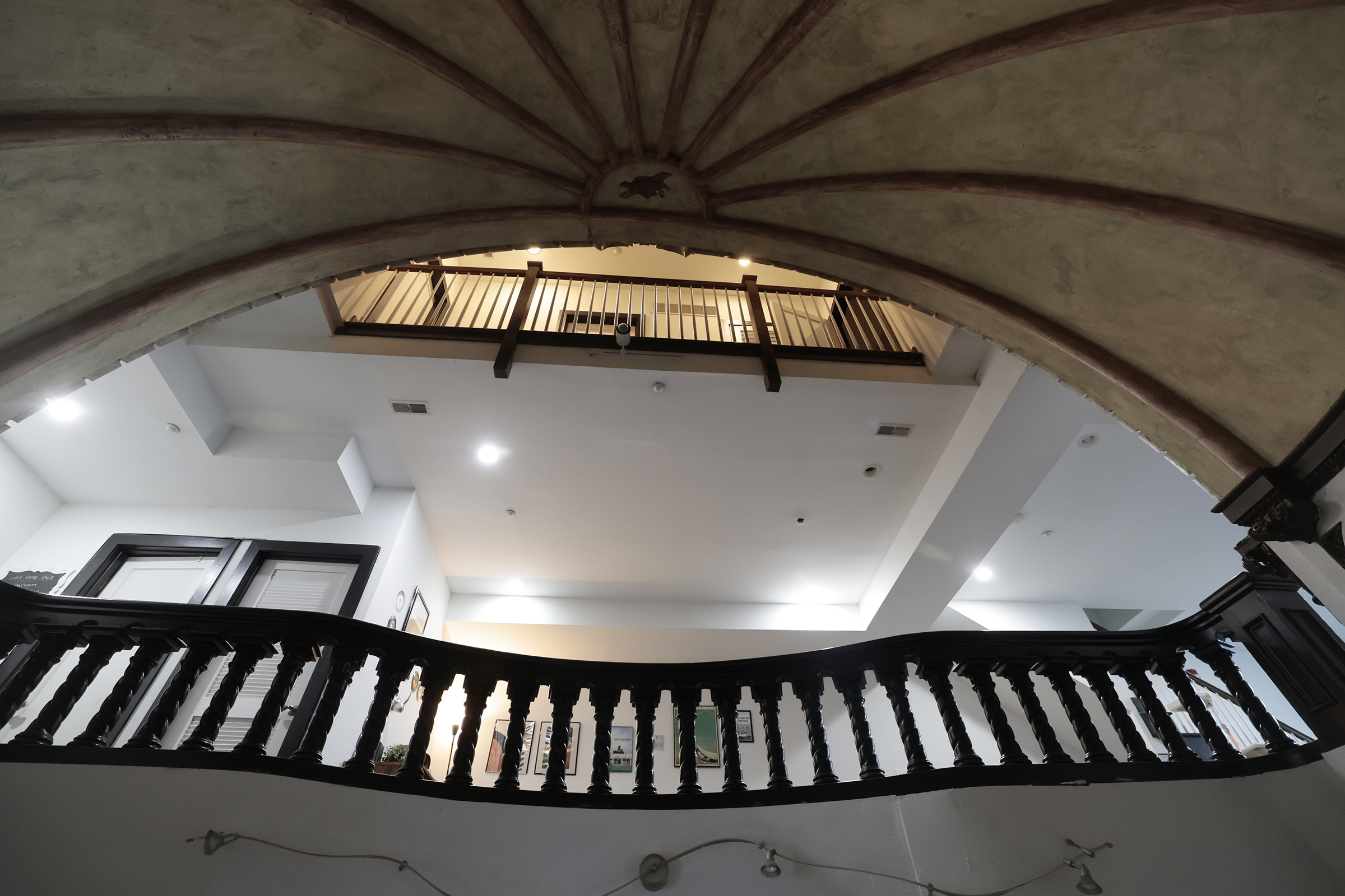 Their four-level apartment includes soaring ceilings, stained glass, columns, and ornate carvings.