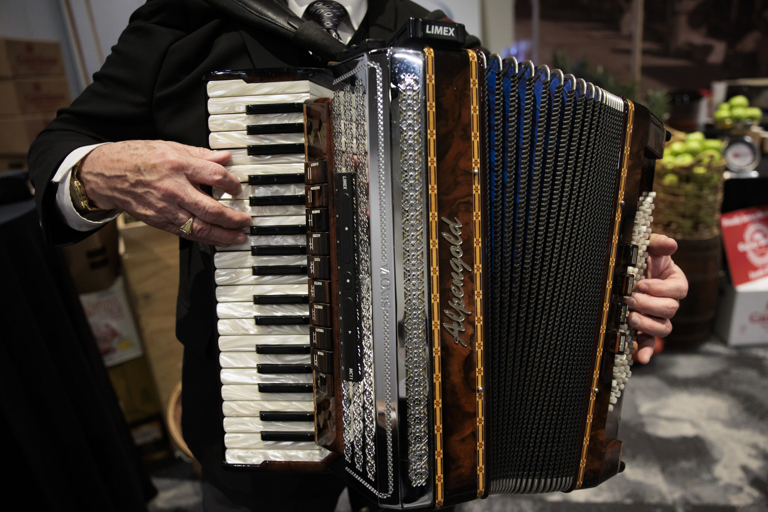 “I love to play,” Bitterlich says of his accordion. “I usually don’t take breaks. Most bands will play 40 minutes on, 20 minutes off. I just play through.”