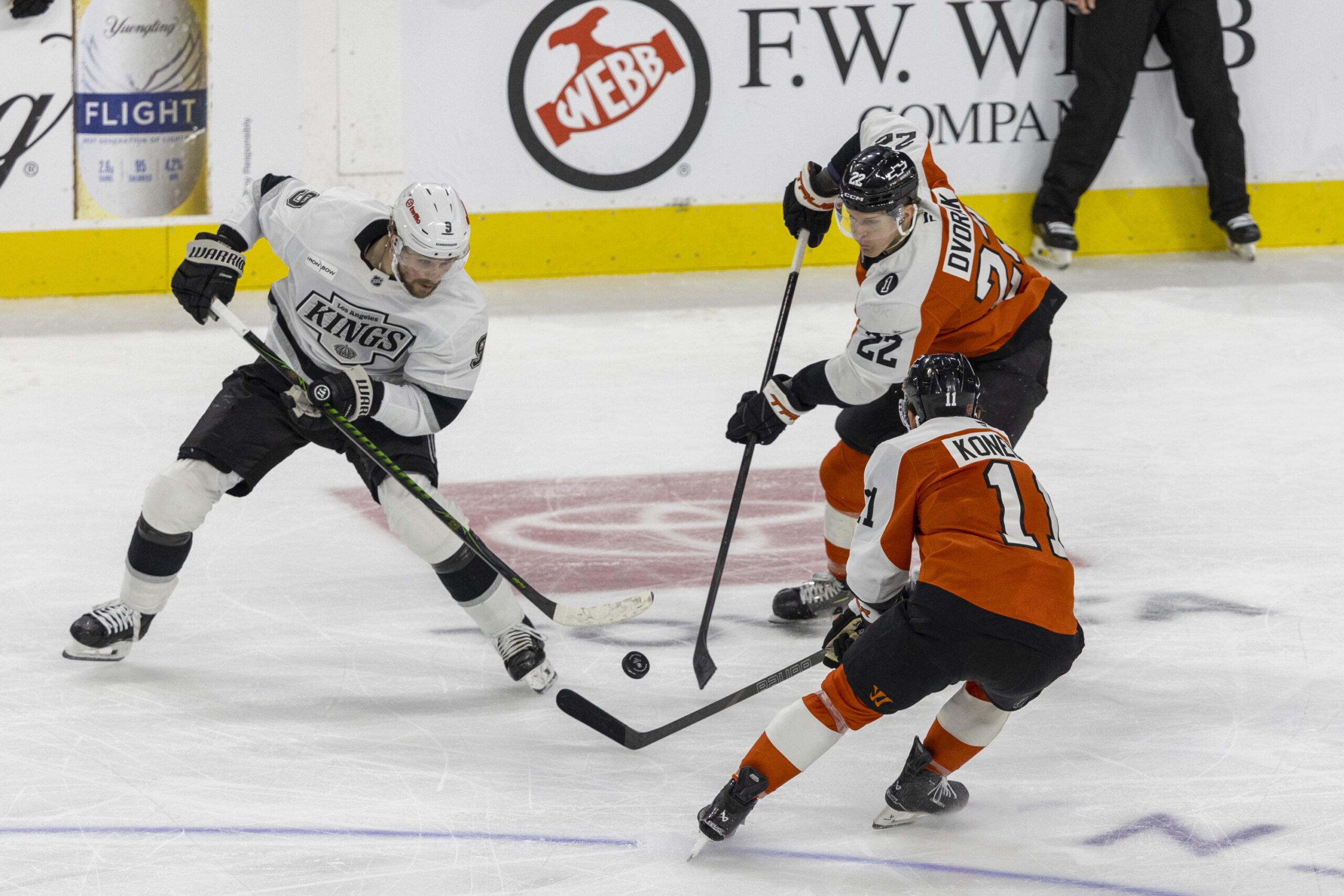 But from that point on, the Flyers got their legs back. Trevor Zegras brought the team within one on the power play under a minute into the second period, and Travis Konecny tipped in a point shot from Rasmus Ristolainen seconds into the third period to tie the game. But in overtime, Konecny hit the post on a breakaway opportunity against Darcy Kuemper, and then Quinton Byfield and the Kings capitalized shortly after on the other end.