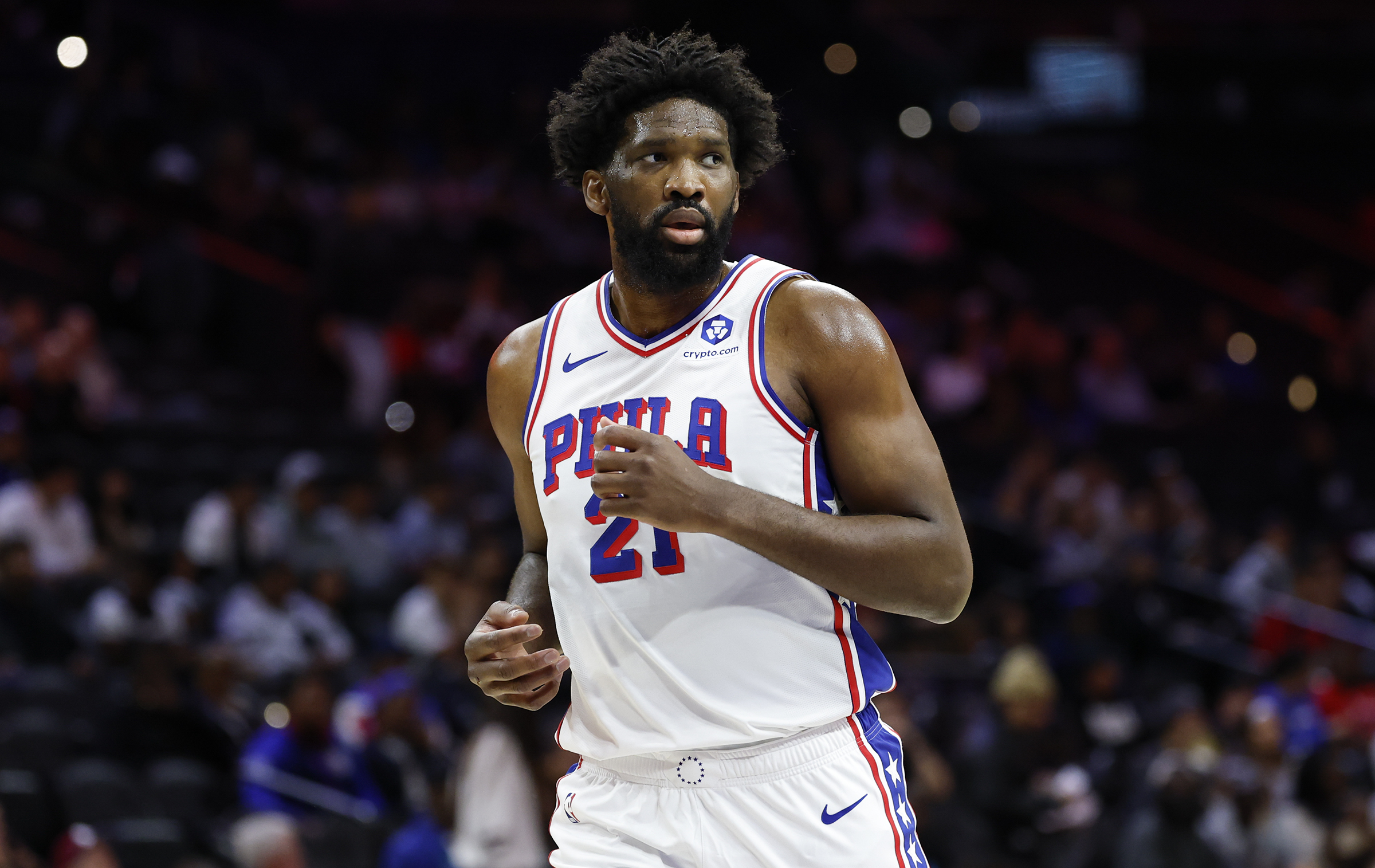 Sixers center Joel Embiid is still working his way back to form after undergoing knee surgery this offseason.