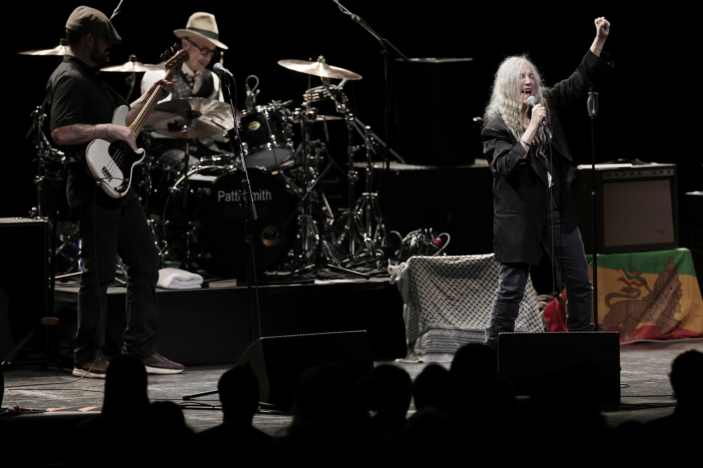 That was followed by the full-on, rocked-out “People Have the Power,” for which the band was joined by New Jersey guitarist and longtime Smith associate James Mastro.