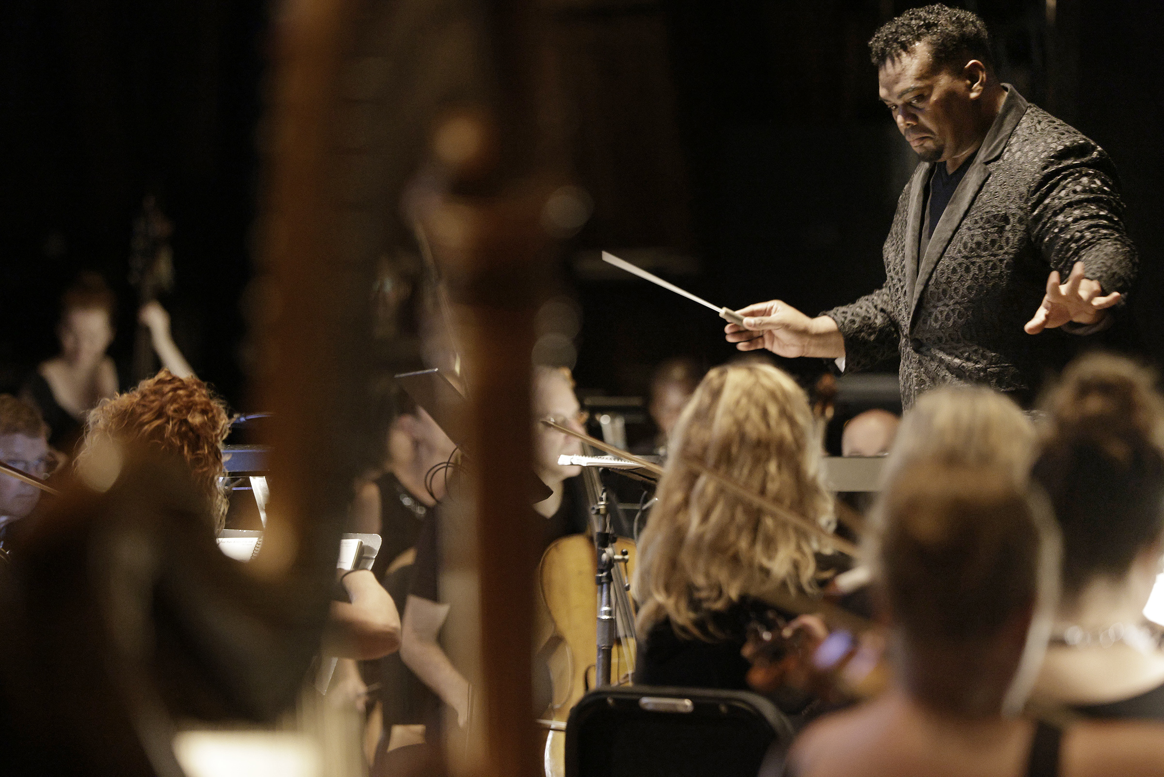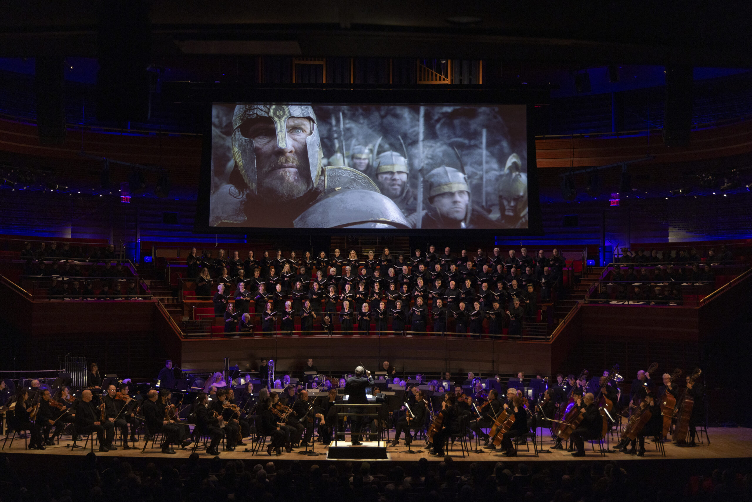 Rothman calls the work, which was commissioned by the orchestra, “a really novel way to present opera, where you have the singers and the orchestra live on stage, but all the action is taking place up on the screen.”