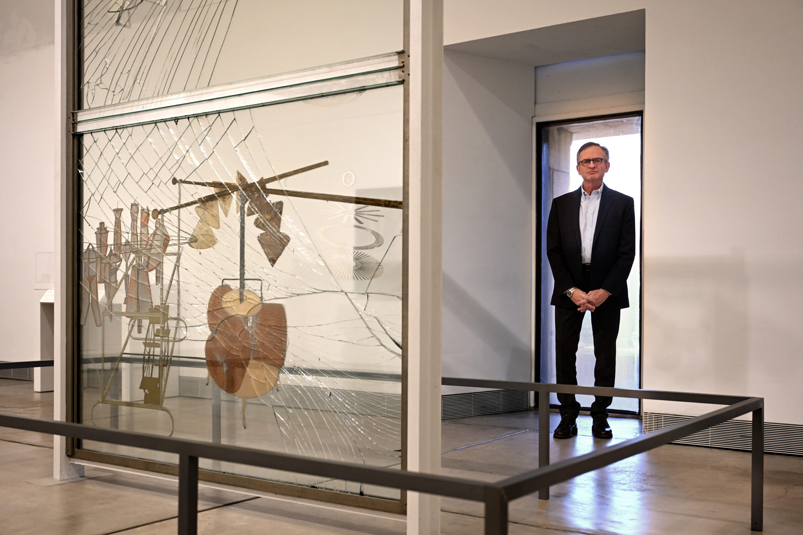 Daniel H. Weiss, director and CEO of the Philadelphia Art Museum, with “The Bride Stripped Bare by Her Bachelors, Even” (1915–1923, also called “The Large Glass”) by Marcel Duchamp.