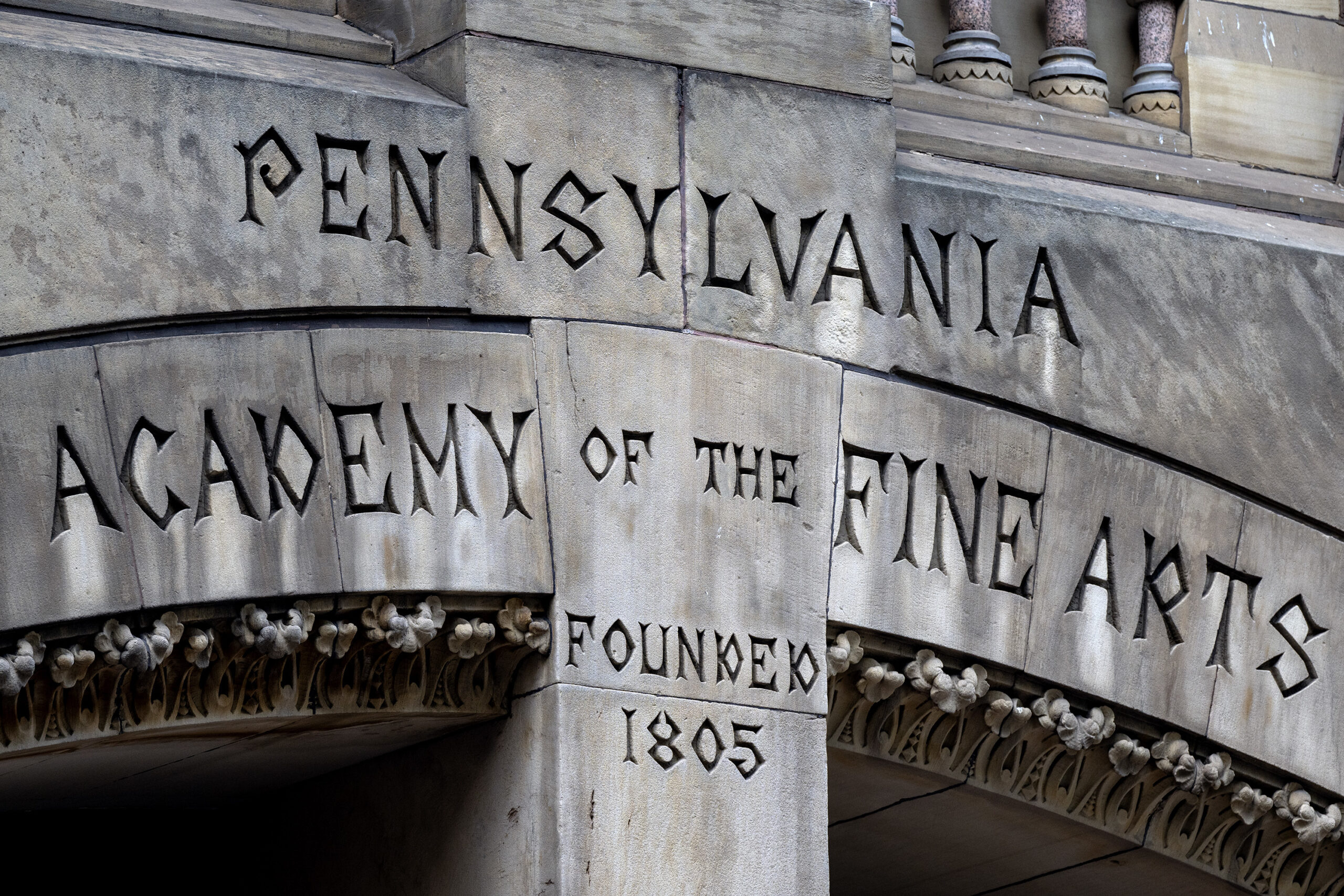 The name over the front entrance of the Pennsylvania Academy of the Fine Arts’s 1876 building at Broad and Cherry Sts., Sept. 29, 2025.