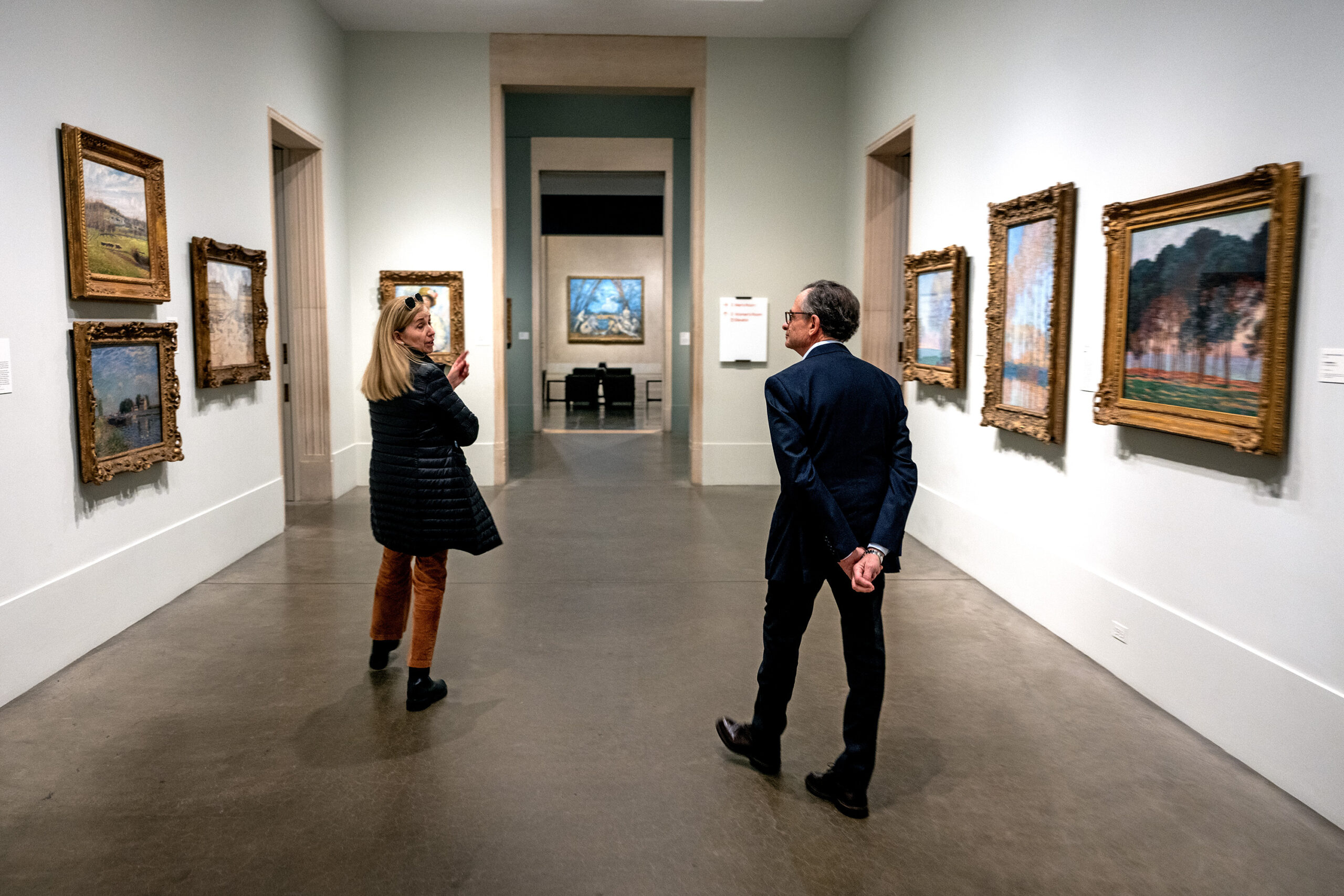 Daniel H. Weiss, director and CEO of the Philadelphia Art Museum, walks through galleries with museum staffer Laura Coogan on Jan. 7.