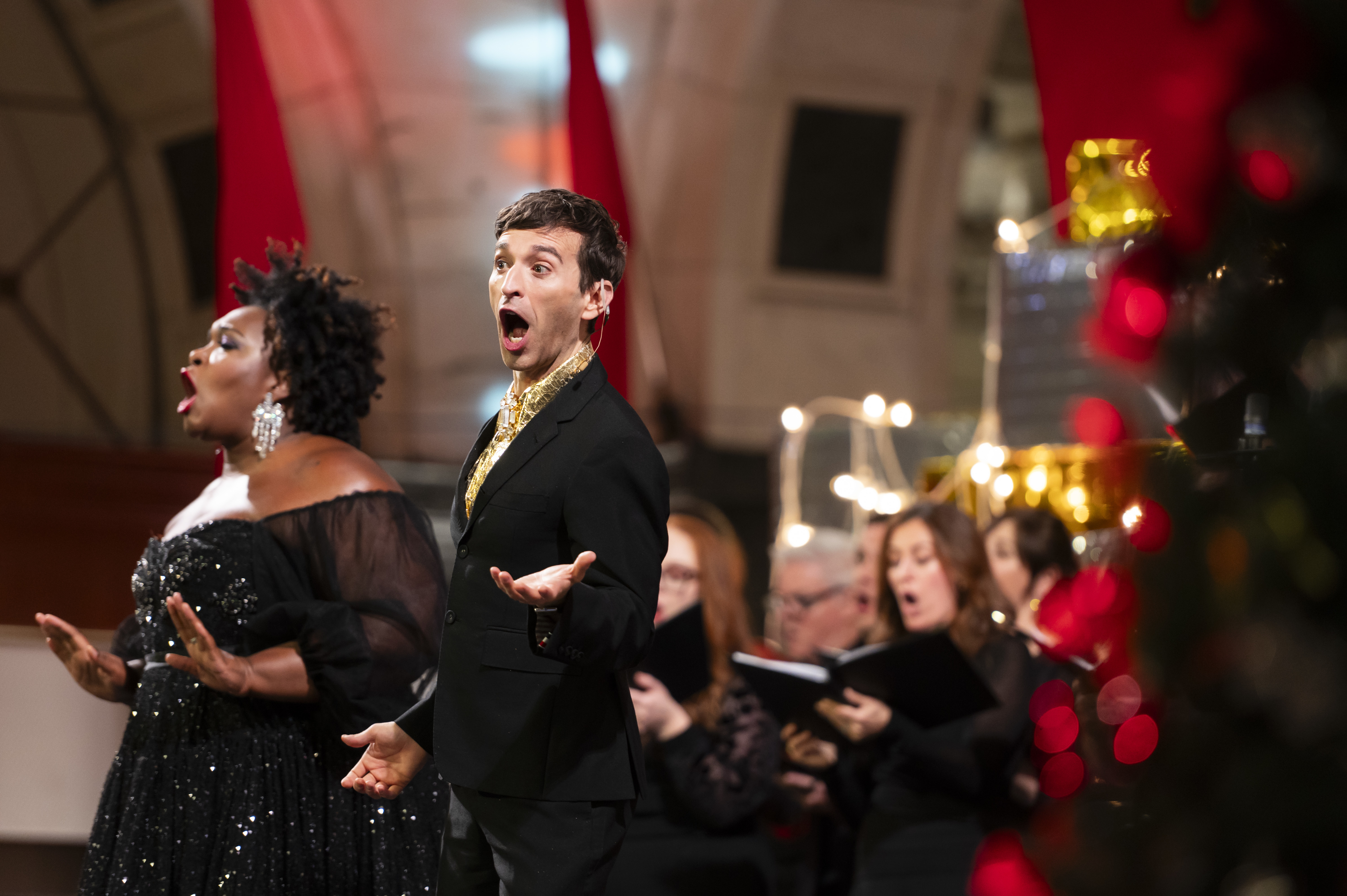 The forces — orchestra, chorus, dancers, superb soprano Leah Hawkins, and clarion-countertenor (and Opera Philadelphia chief) Anthony Roth Costanzo led by conductor Geoffrey McDonald — delivered a variety-hour-plus celebration a la “Radio City Christmas Spectacular,” if in miniature.