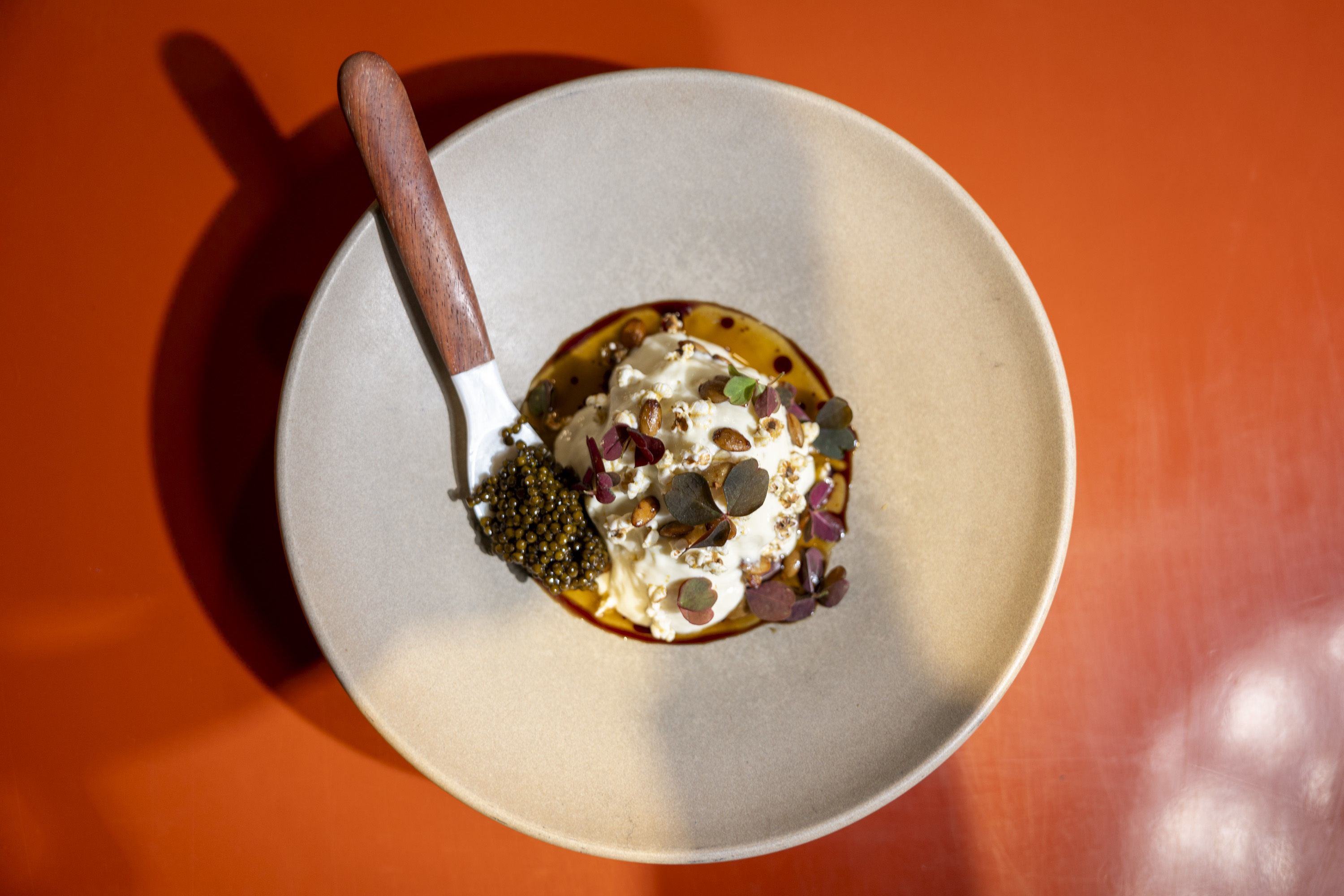 Egg custard with uni and swordfish bacon at Heavy Metal Sausage Co.