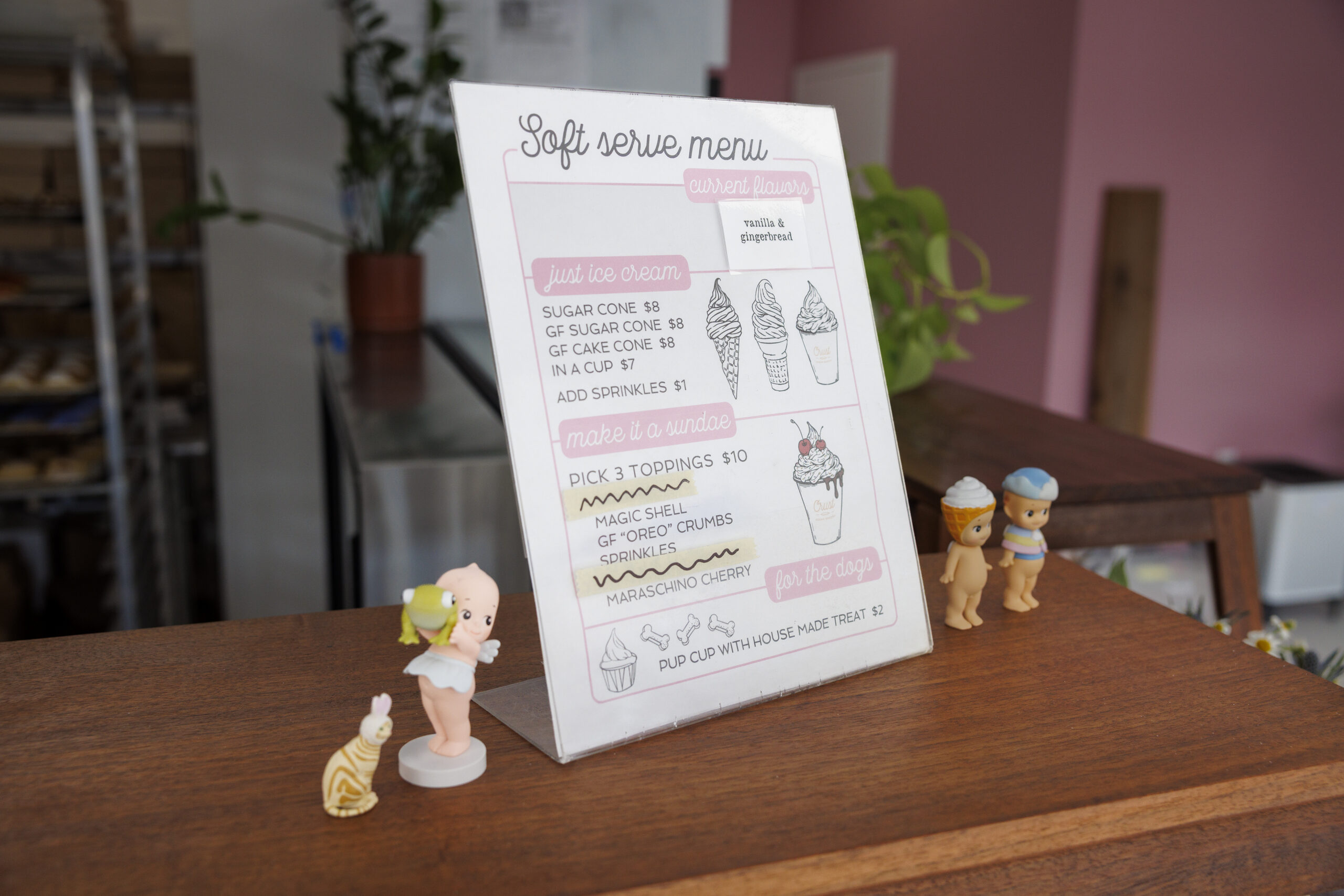 Crust Vegan Bakery’s dairy-free soft serve menu, which is offered year round and includes toppings.