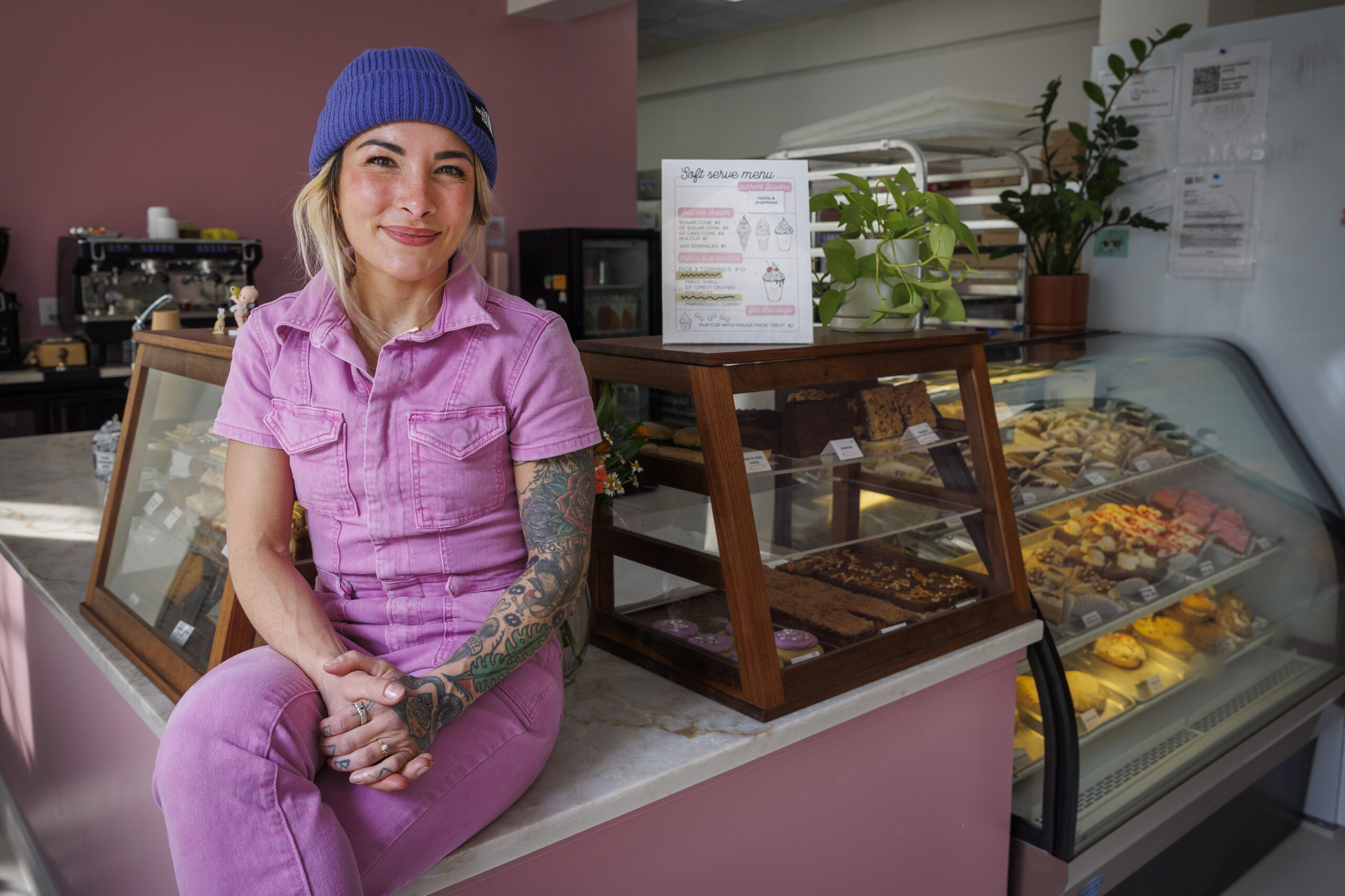 At Crust’s new location, a sparse yet cozy cafe area with two tables and a large, lived-in green couch bleeds into the kitchen, where staff pivot from packaging cakes and swirling soft-serve cones to frosting pop-tarts. The streamlined setup has allowed Benz to dream big. Already on her wish list for the future: a separate convection oven for made-to-order breakfast sandwiches, a back room for cake-decorating classes, and more room for colorful displays.