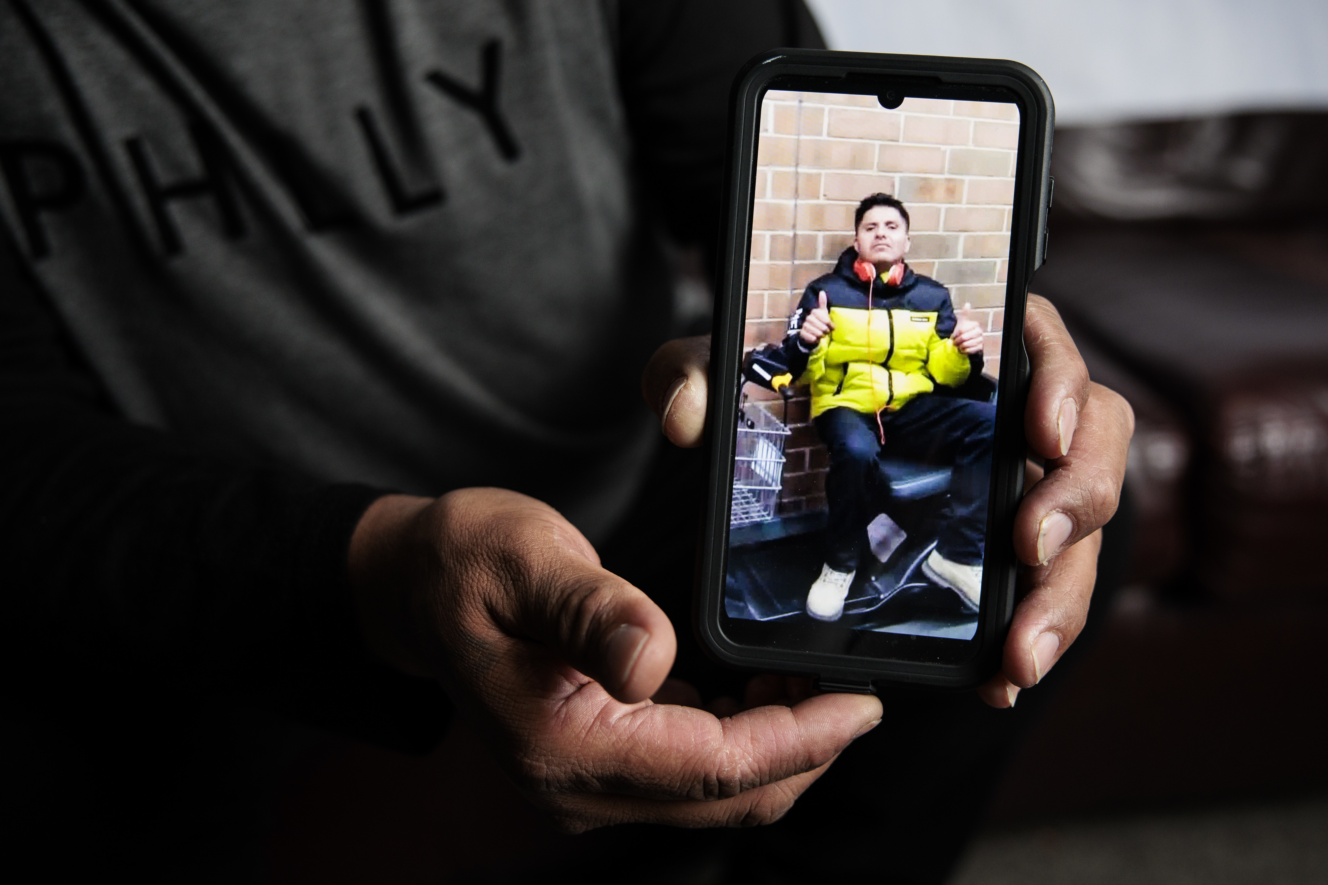 Lenin Acurio Suarez holds a photograph of his brother, Victor, at his home in Seaford, Del., on Wednesday. Victor was arrested by ICE on Sept. 22.
