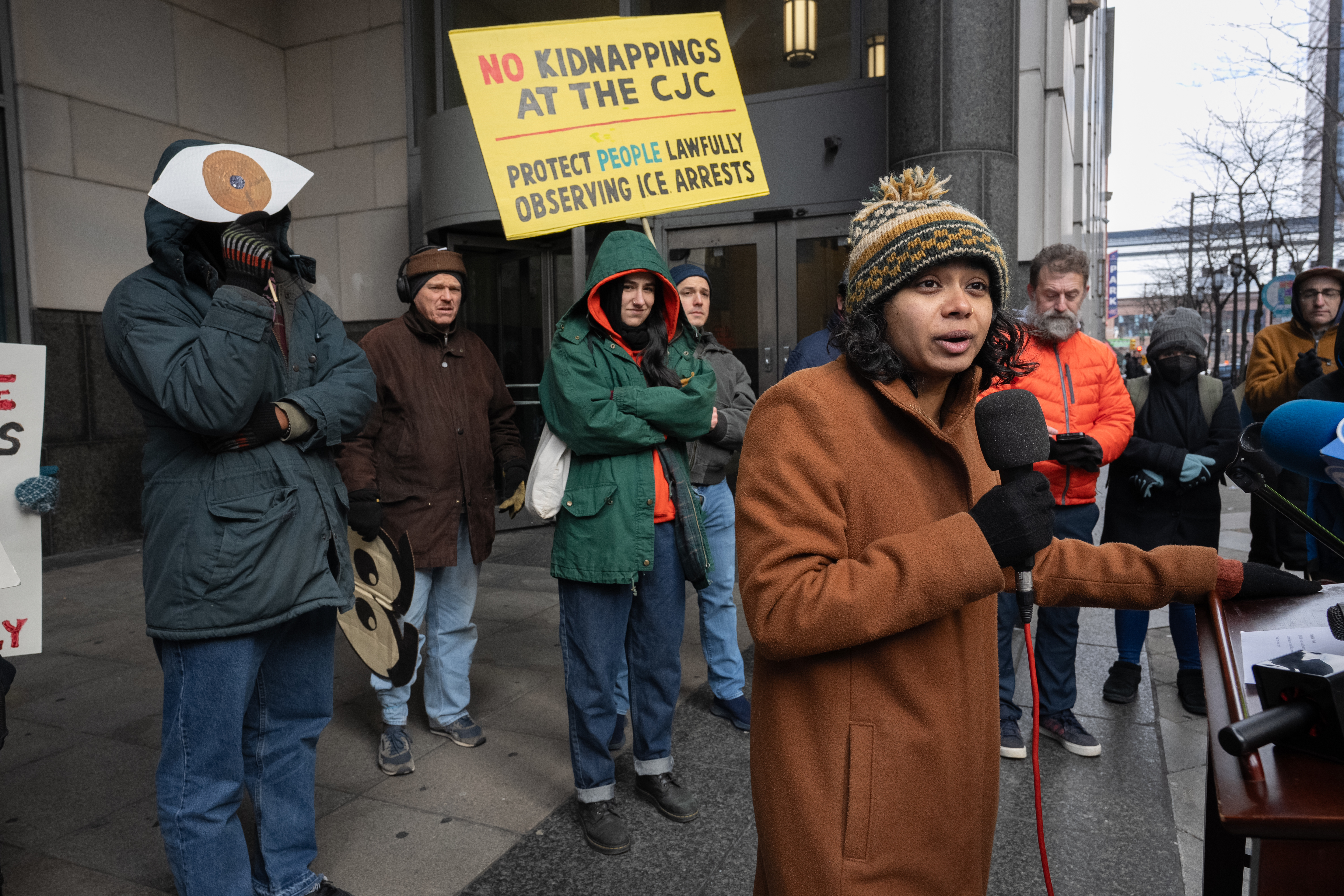 “There are people watching. We have eyes on this,” Raihan said, adding that ICE is “allowed to hang in the lobby, sometimes in the courtrooms.”