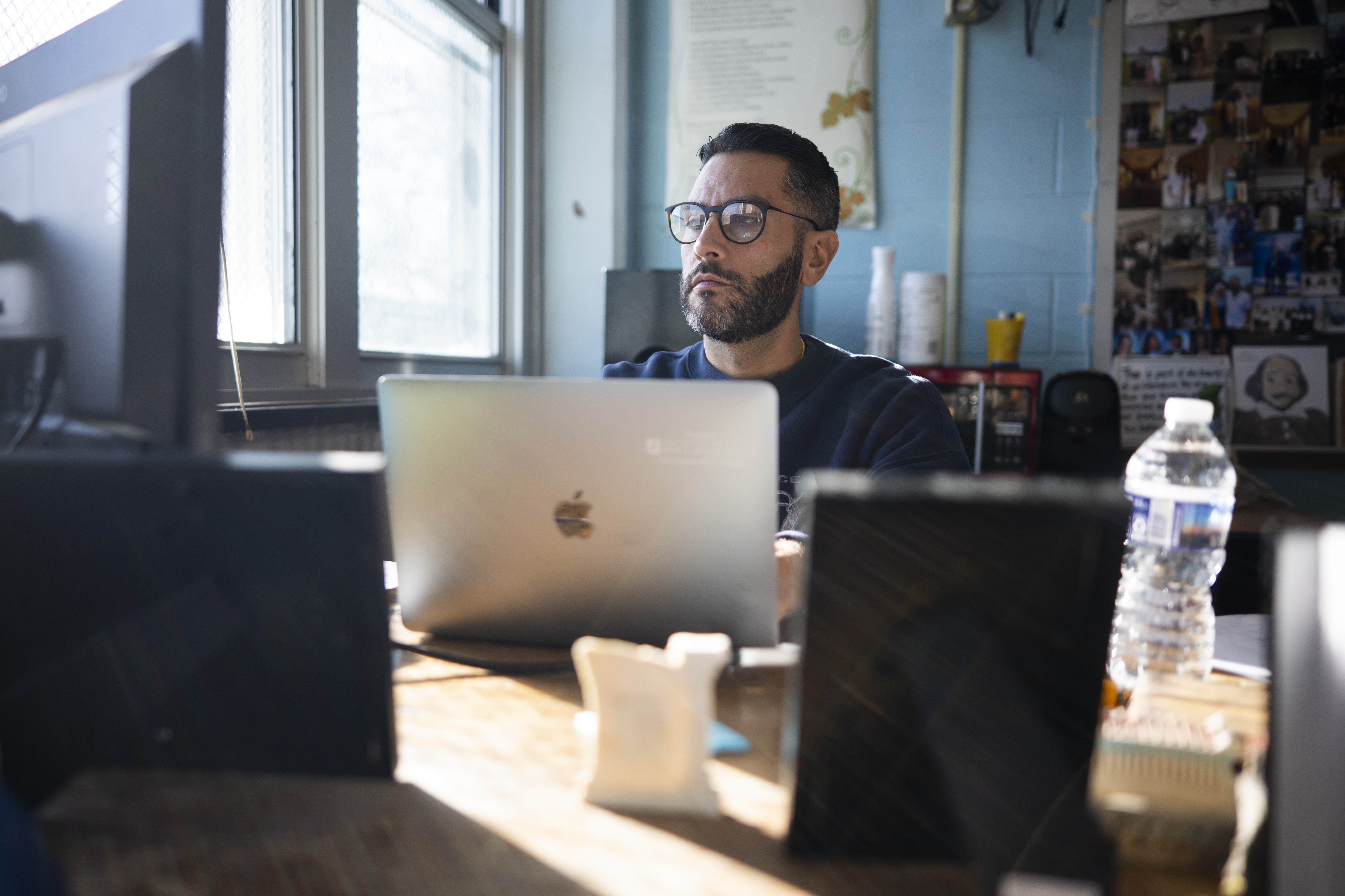 Teacher Billy Marchio in his classroom on Monday, Nov. 24, 2025 at George Washington High School in Philadelphia.