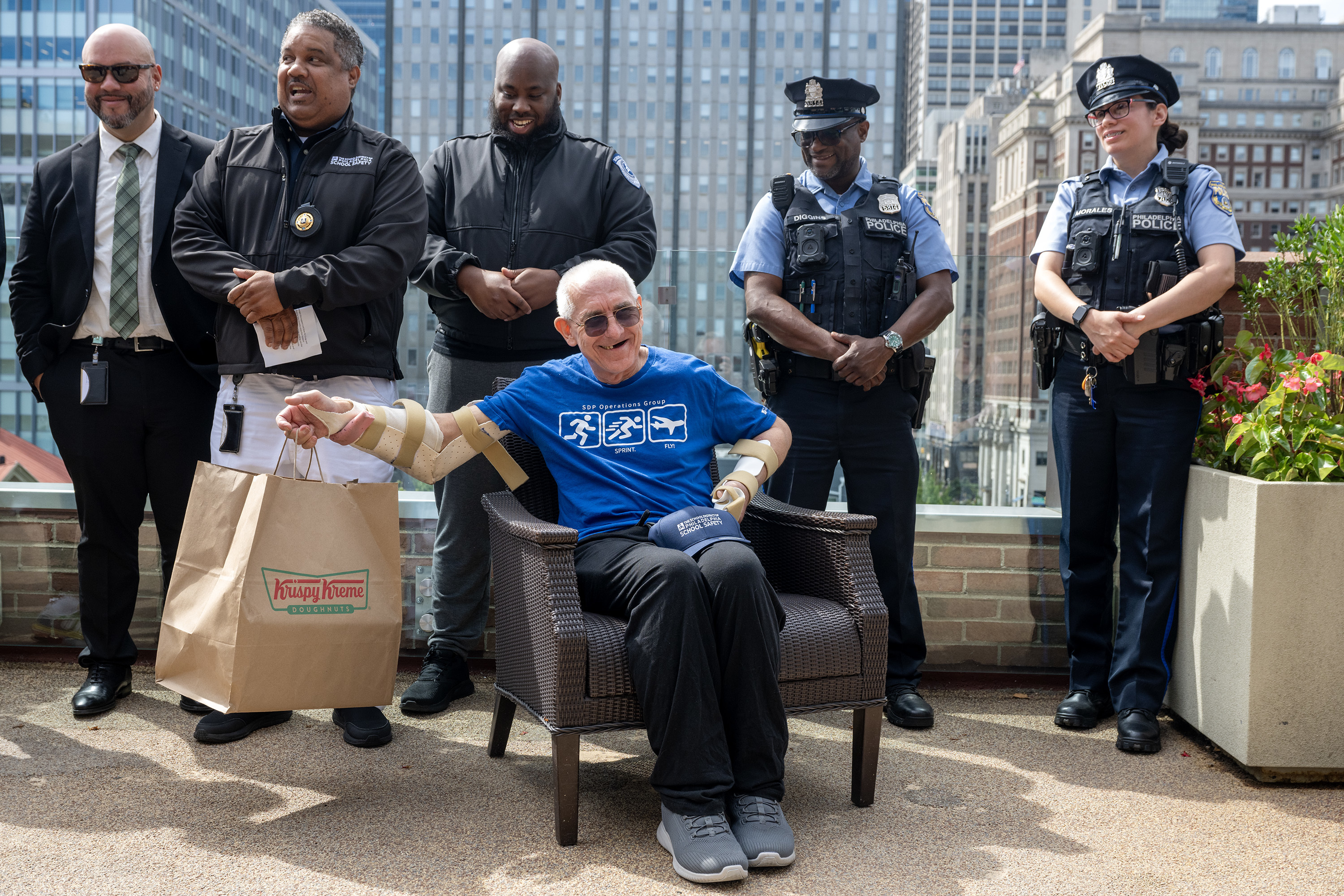 Five months ago, the retired Philadelphia police officer, a Philadelphia School District safety officer of nearly 20 years, was shot 11 times while driving in a marked patrol car. He almost died.