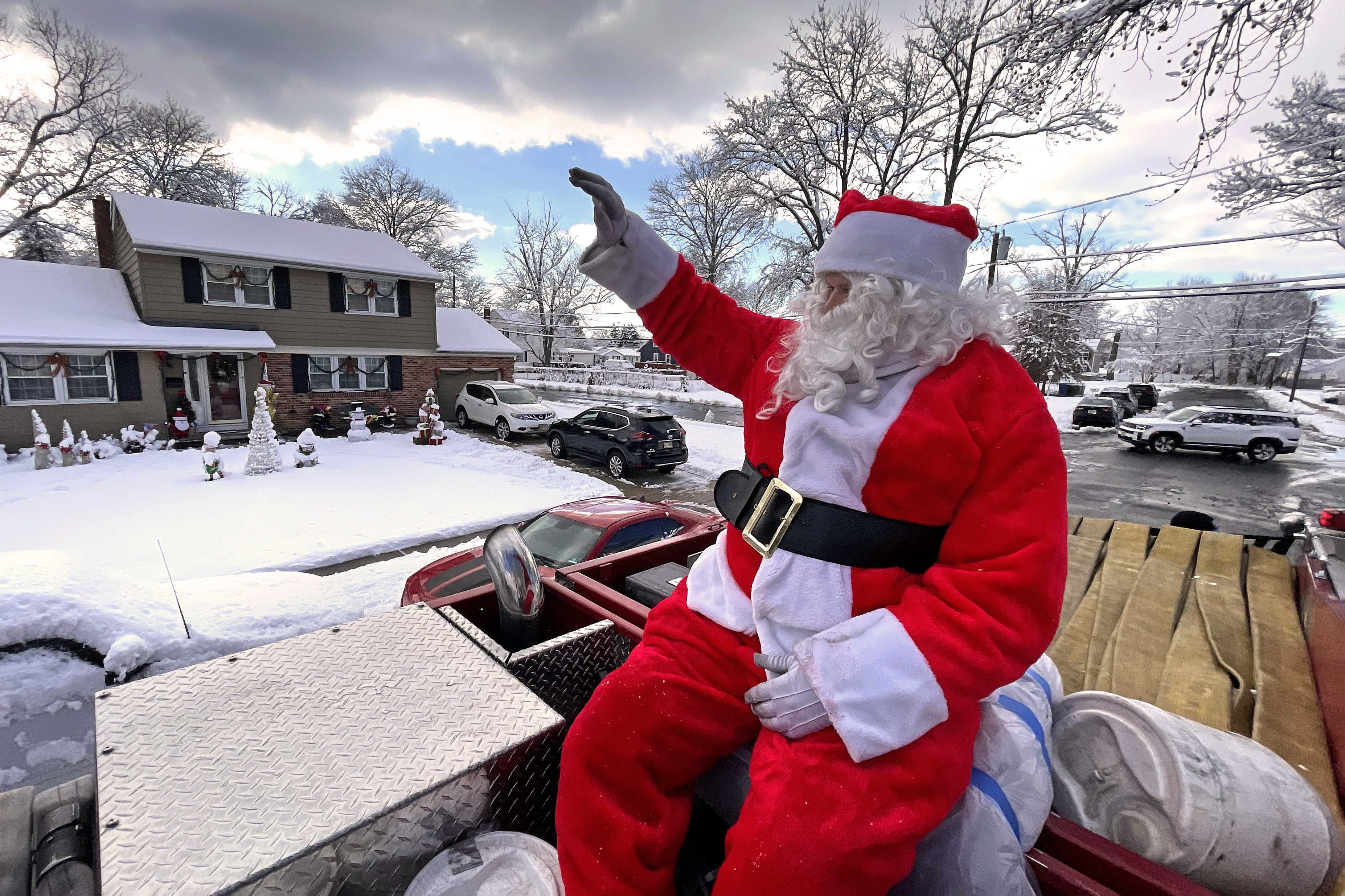 And, on the same day, a firefighter Santa riding through the neighborhood.