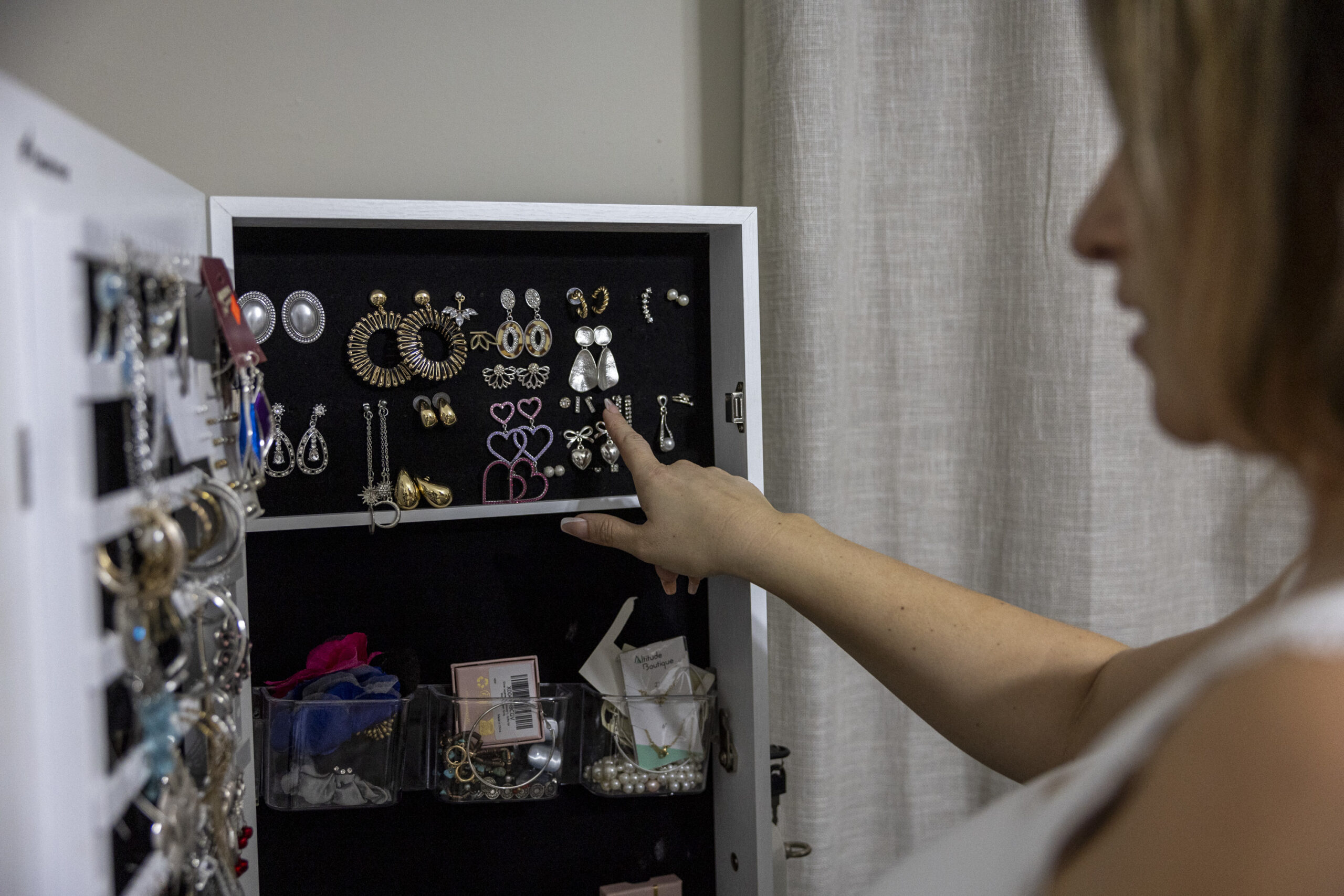 Nolt consulted her friend on which earrings she should wear.