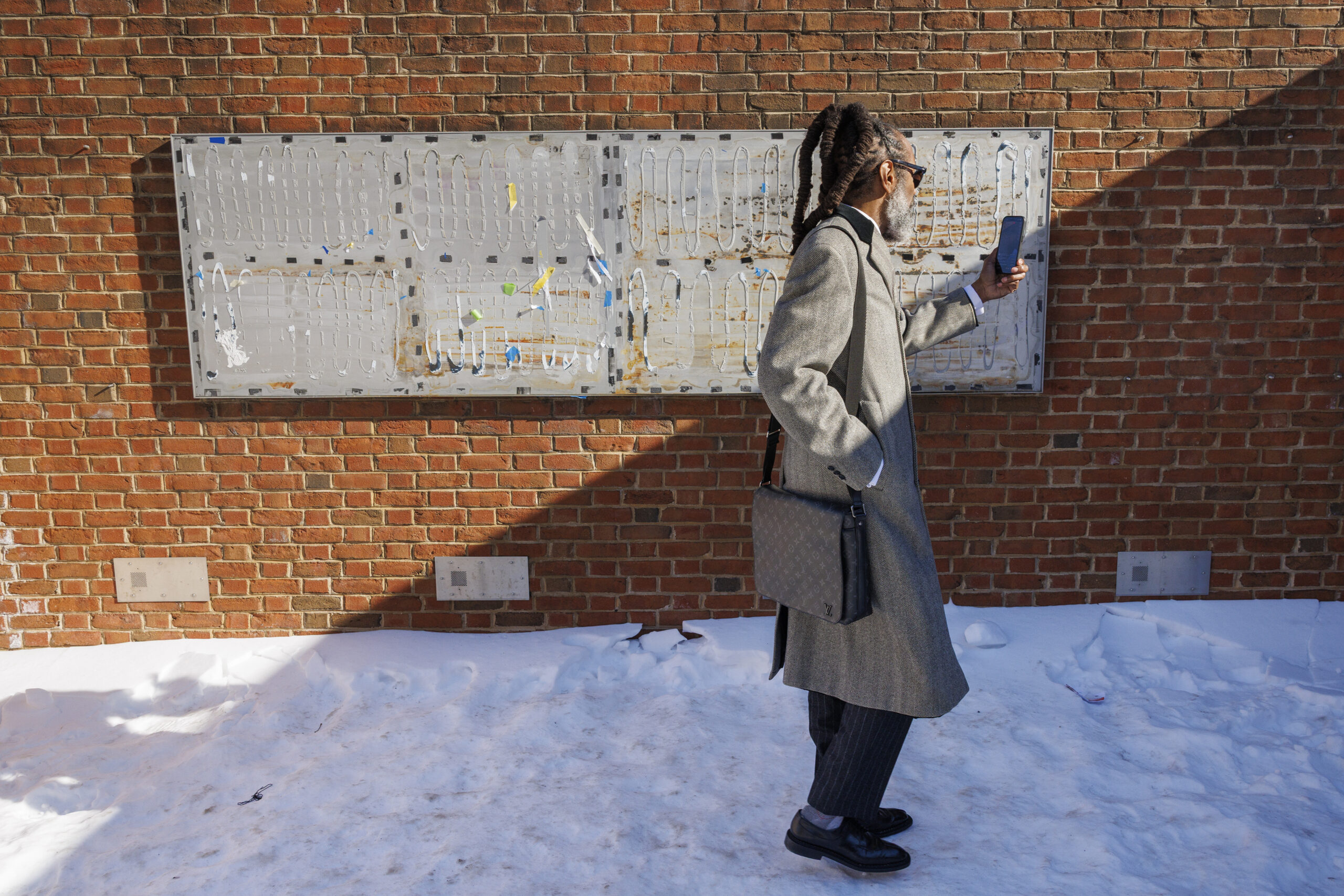 Rufe asked questions about the removed panels and what exhibits could be further removed. She walked around the site, still not cleared of the previous weekend’s snow, to review a wall in which the names of the President’s House enslaved residents are etched into the stone.
