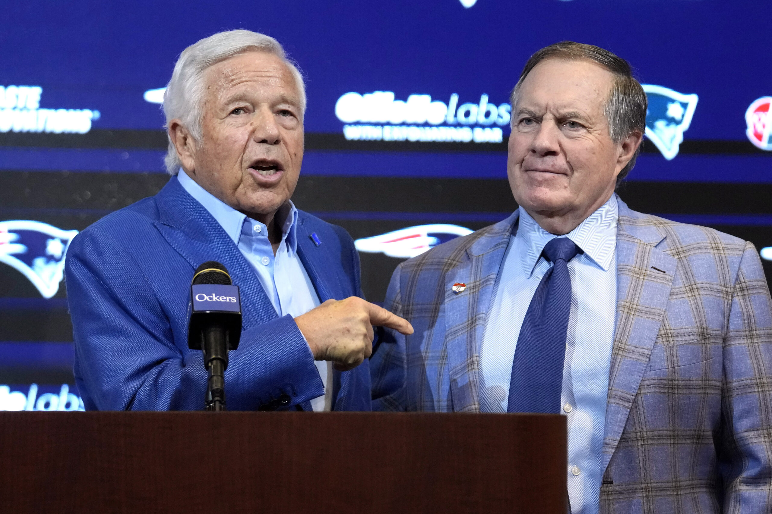 New England Patriots owner Robert Kraft (left) with coach Bill Belichick on Jan. 11, 2024, the day of Belichick’s exit.