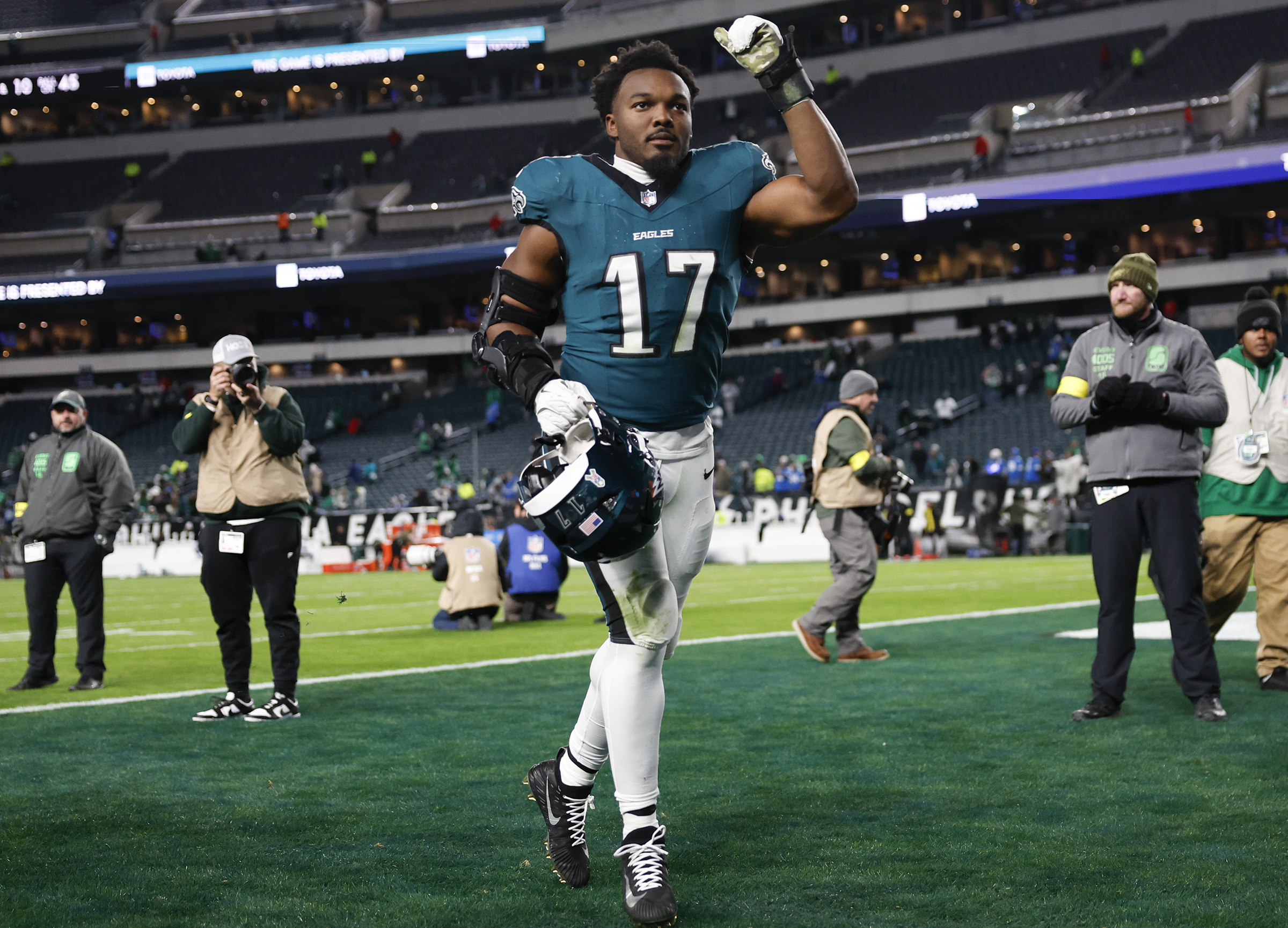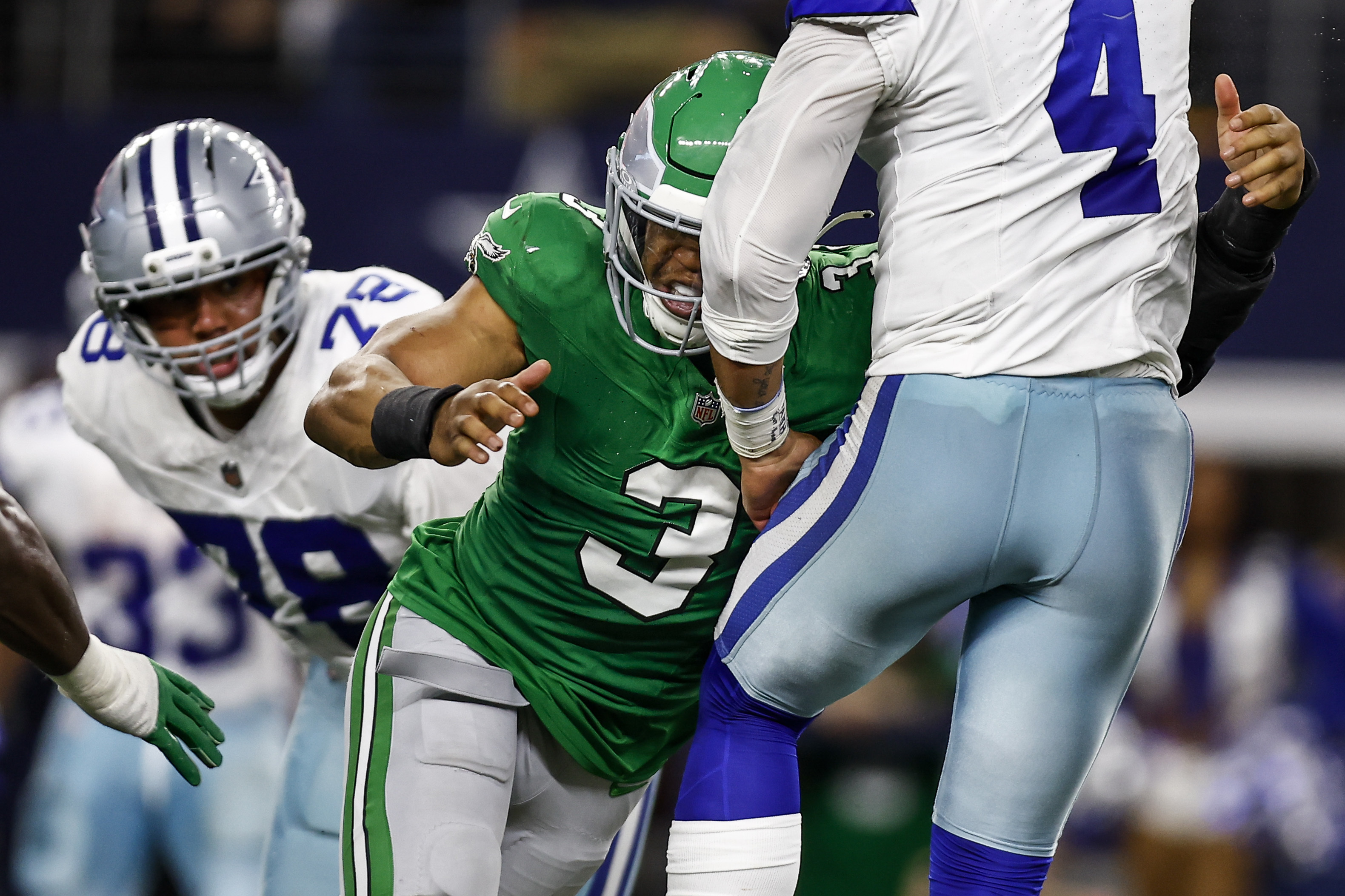 Most big-money quarterbacks are asked to be the best player, but Hurts’ real job is to complement players who are better at their job than he is at his, when compared with players who play their positions. Led by Barkley, those players include, without question, receivers A.J. Brown and DeVonta Smith and linemen Jordan Mailata, Landon Dickerson, and Lane Johnson. Tight end Dallas Goedert and center Cam Jurgens might qualify, too.