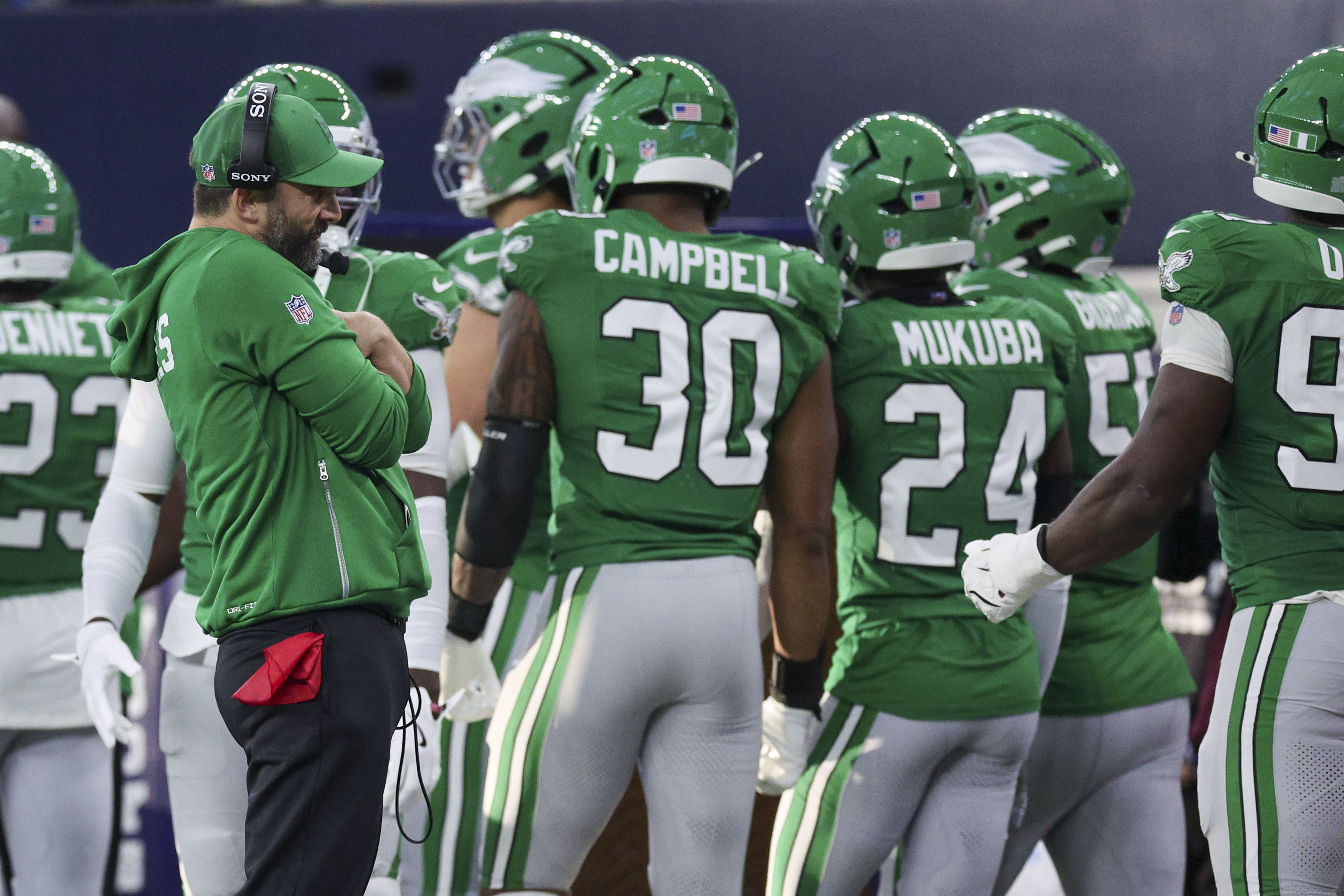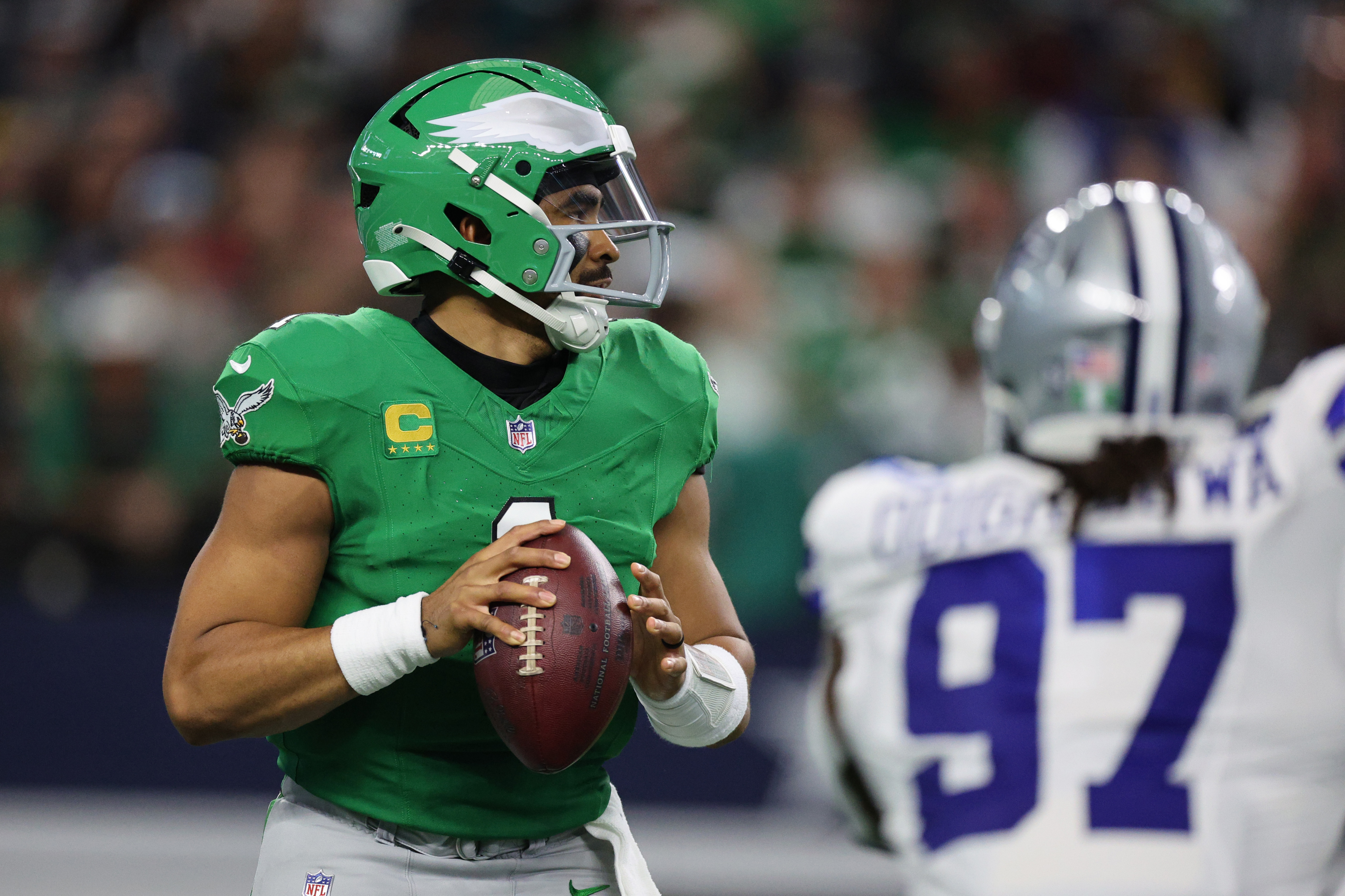Hurts isn’t the superstar owner Jeffrey Lurie and the Jordan Brand wish he was. Rather, he’s at the right place at the right time. He finds himself surrounded by elite talent on both sides of the ball, led by a very good coaching staff, with the NFL‘s best owner and its best GM. Together, they make it work. They win, a lot. But when good defenses set their minds to making Hurts beat them, and disguise their defenses, winning is less certain and much uglier. That’s what has happened in 2025.