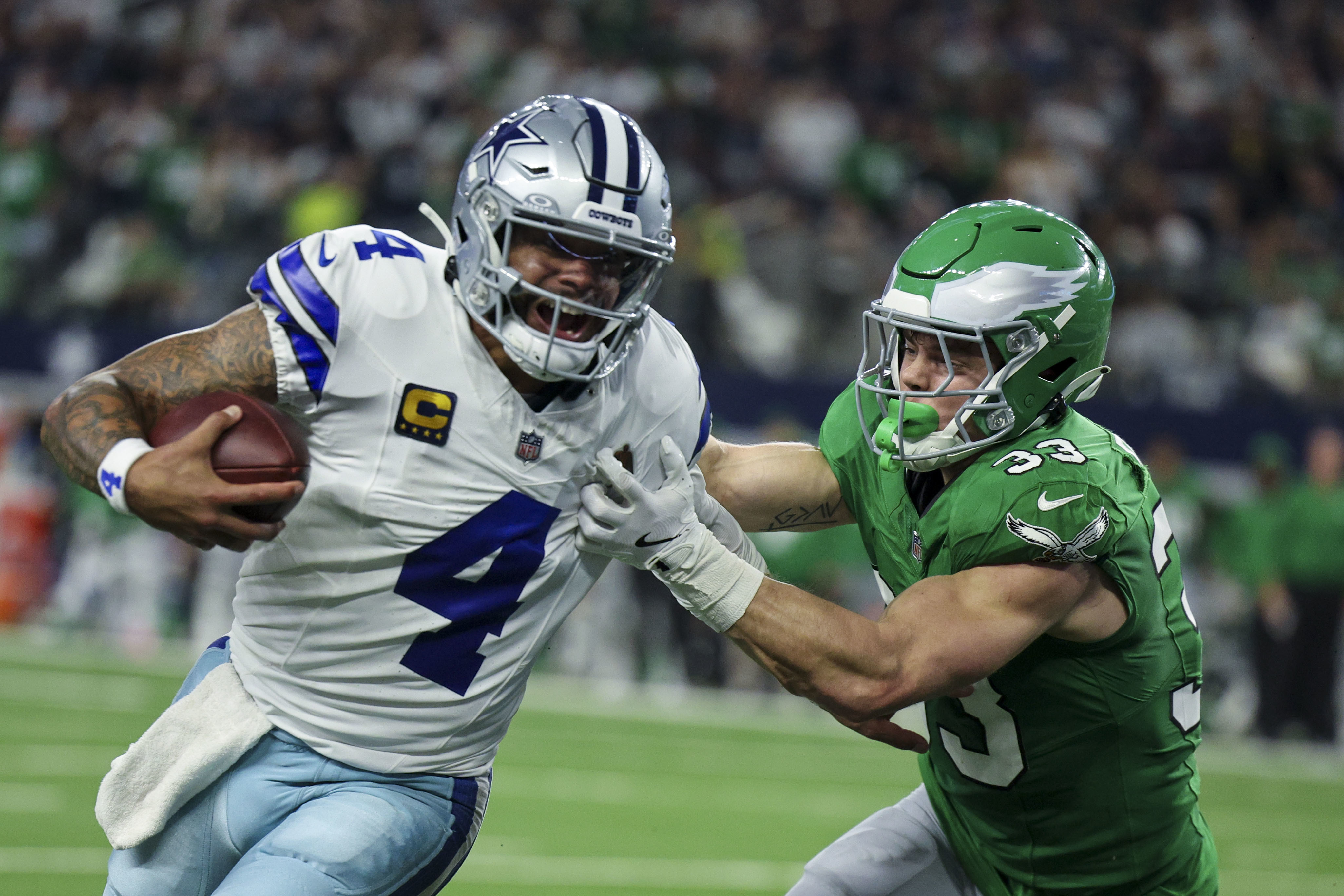 Hurts played his best in 2022, which was his second season with offensive coordinator Shane Steichen, now the coach in Indianapolis. He was superb at times in 2024 under Kellen Moore, who’d coached and coordinated Dak Prescott for five years in Dallas; Prescott had a similar pedigree and projection as Hurts.