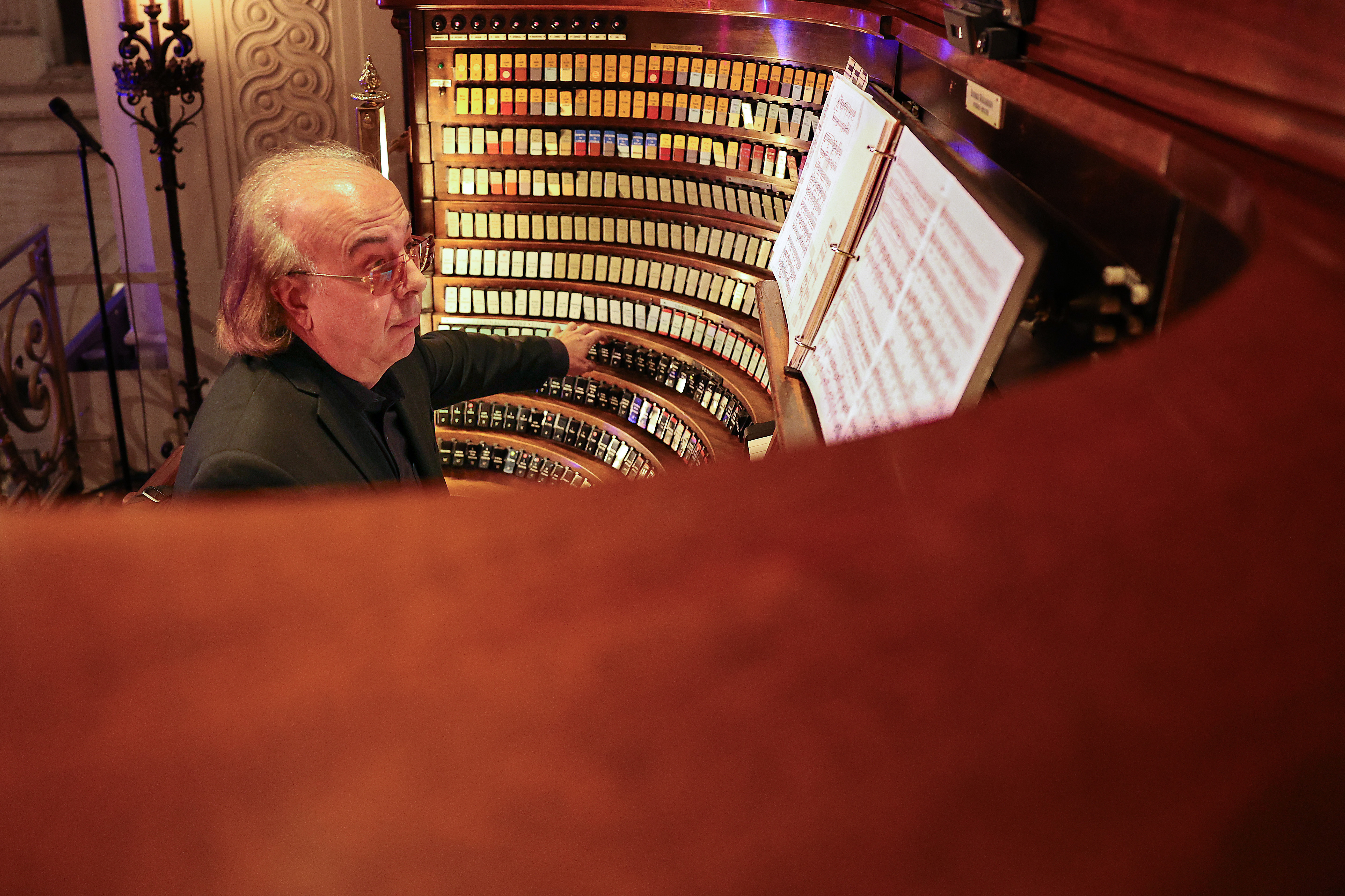 Peter Richard Conte plays the pipe organ at the Wanamaker building for the launch of Opera Philadelphia and Scene’s Pipe Up! Series in Philadelphia on Sunday, Sept. 7, 2025. The historic Wanamaker department store re-opened its doors – this time as a pop-up arts space.