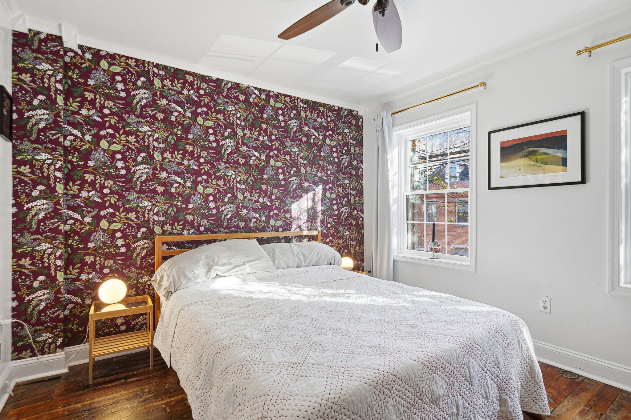 The primary bedroom is on the second floor. A second bedroom, on the third floor, was used as a nursery by previous occupants.