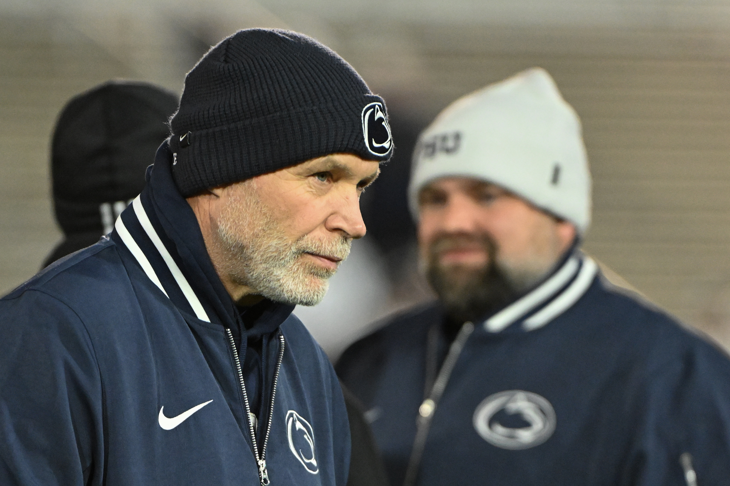 Penn State defensive coordinator Jim Knowles (left) and offensive coordinator Andy Kotelnicki before the game against Nebraska on Nov. 22.