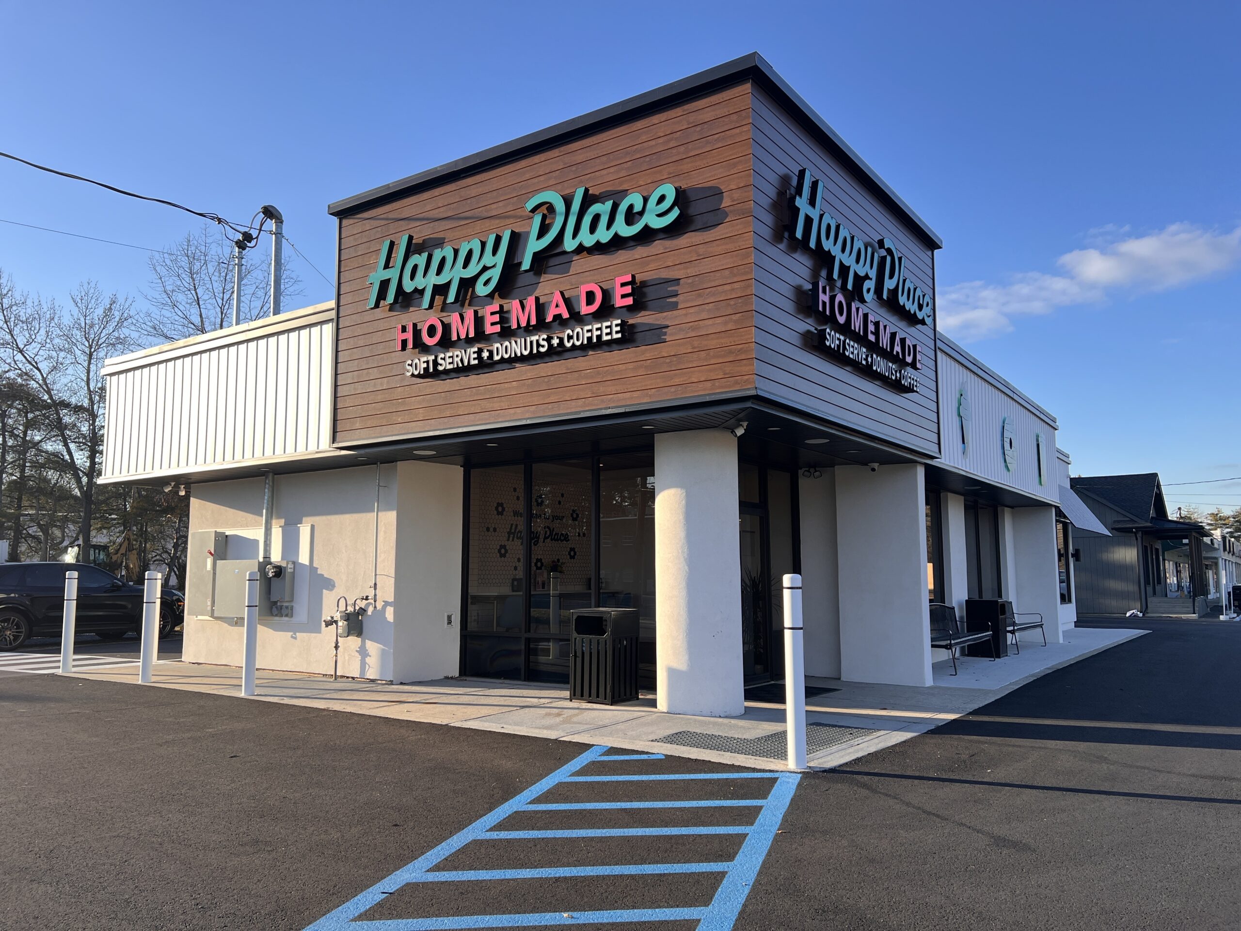 On Jan. 23, Gerber, 32, marks the grand opening of Happy Place Homemade, a bright, modern shop designed around the daily rhythms of the Burlington County town. Set up in a former Bank of America branch on Route 70 — including the drive-through — it serves coffee and scratch-made doughnuts in the morning, and adds soft serve and shakes in the afternoon and evening. There’s seating in booths along the front windows.