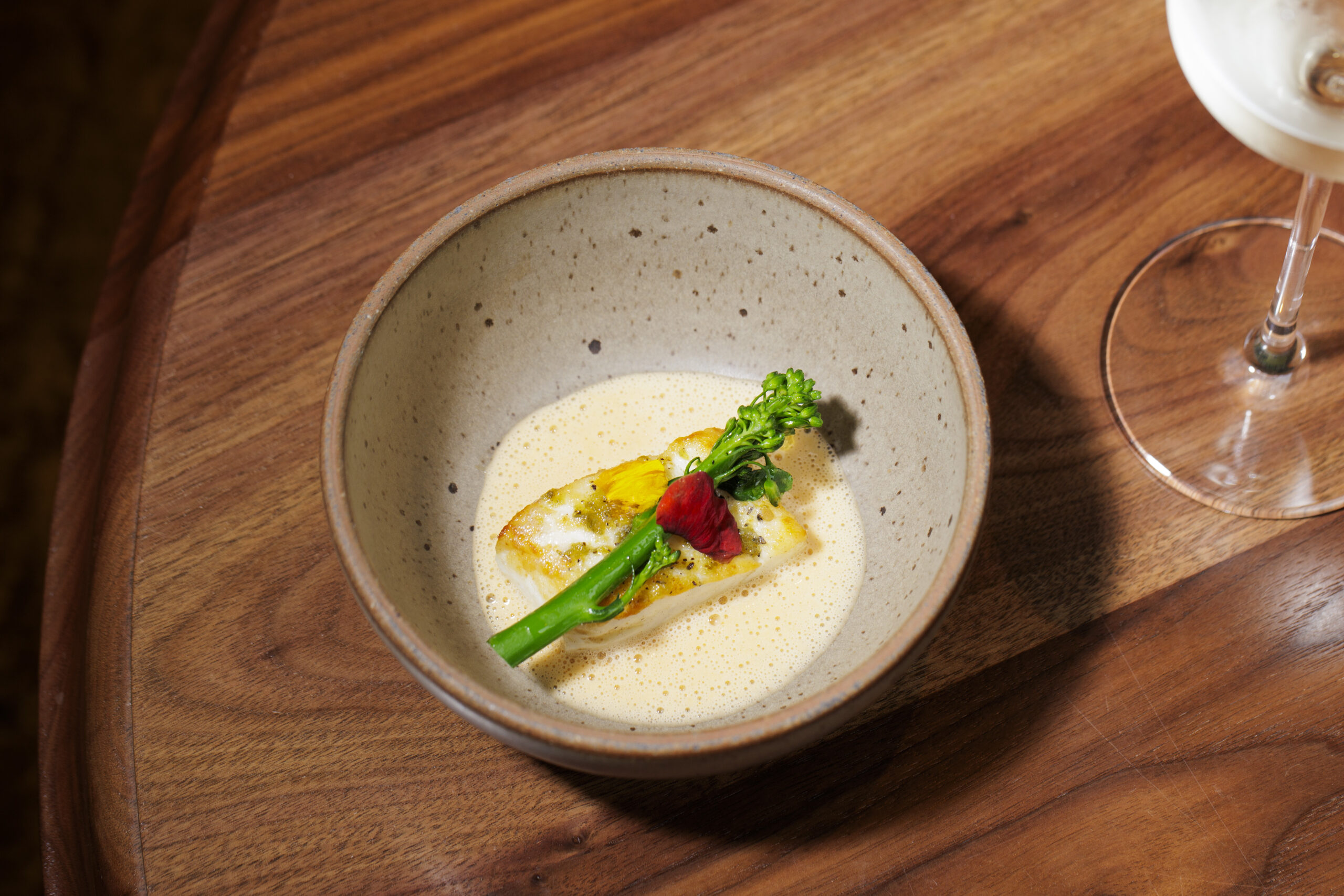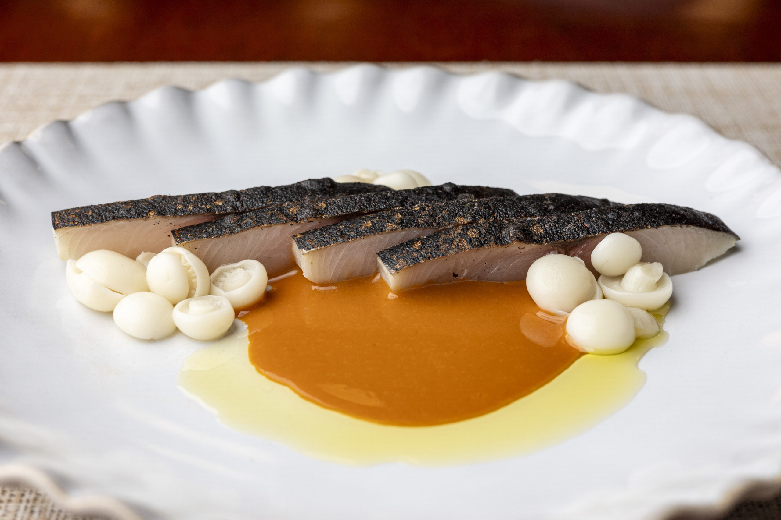 But Fleur’s is the first time in eight years Sabatino has been able to cook his own food — a style that’s now matured beyond the molecular gastronomy tricks of his youth. He’s now focused more on using seasonality and fermentation to elaborate on some classic French ideas. A scallop gratin cradled in its shell, for example, appears familiar enough, evoking Fleur’s brasserie theme with an aromatic whiff of truffle butter. But when I cracked its toasty crumb surface, those sweet scallops were enveloped in a silky puree that traveled to unexpectedly earthy depths thanks to a celery root soubise touched with nixtamalized corn miso. This was just the first of many bites that reminded me why I had been looking forward to Sabatino’s comeback for some time.