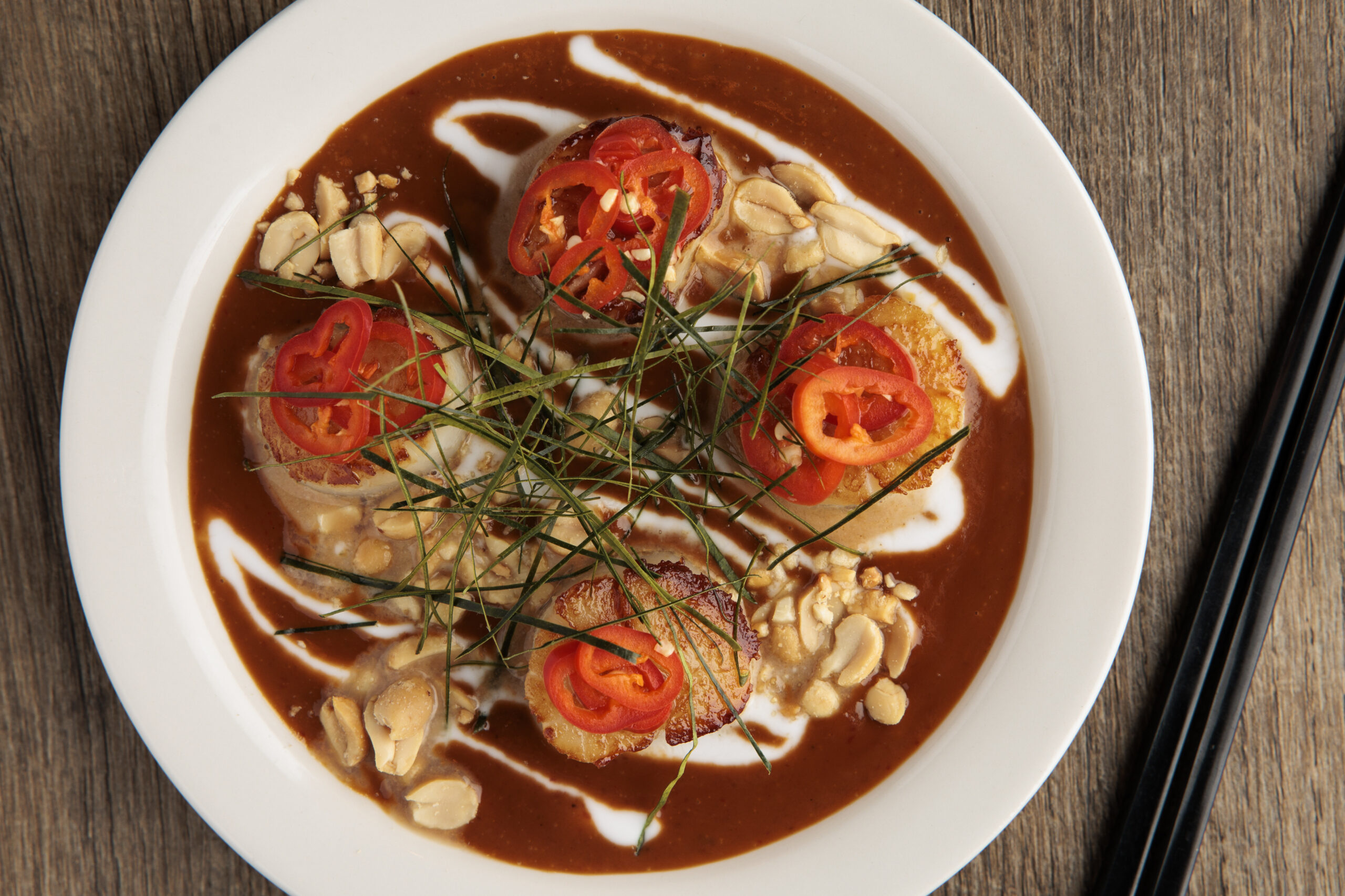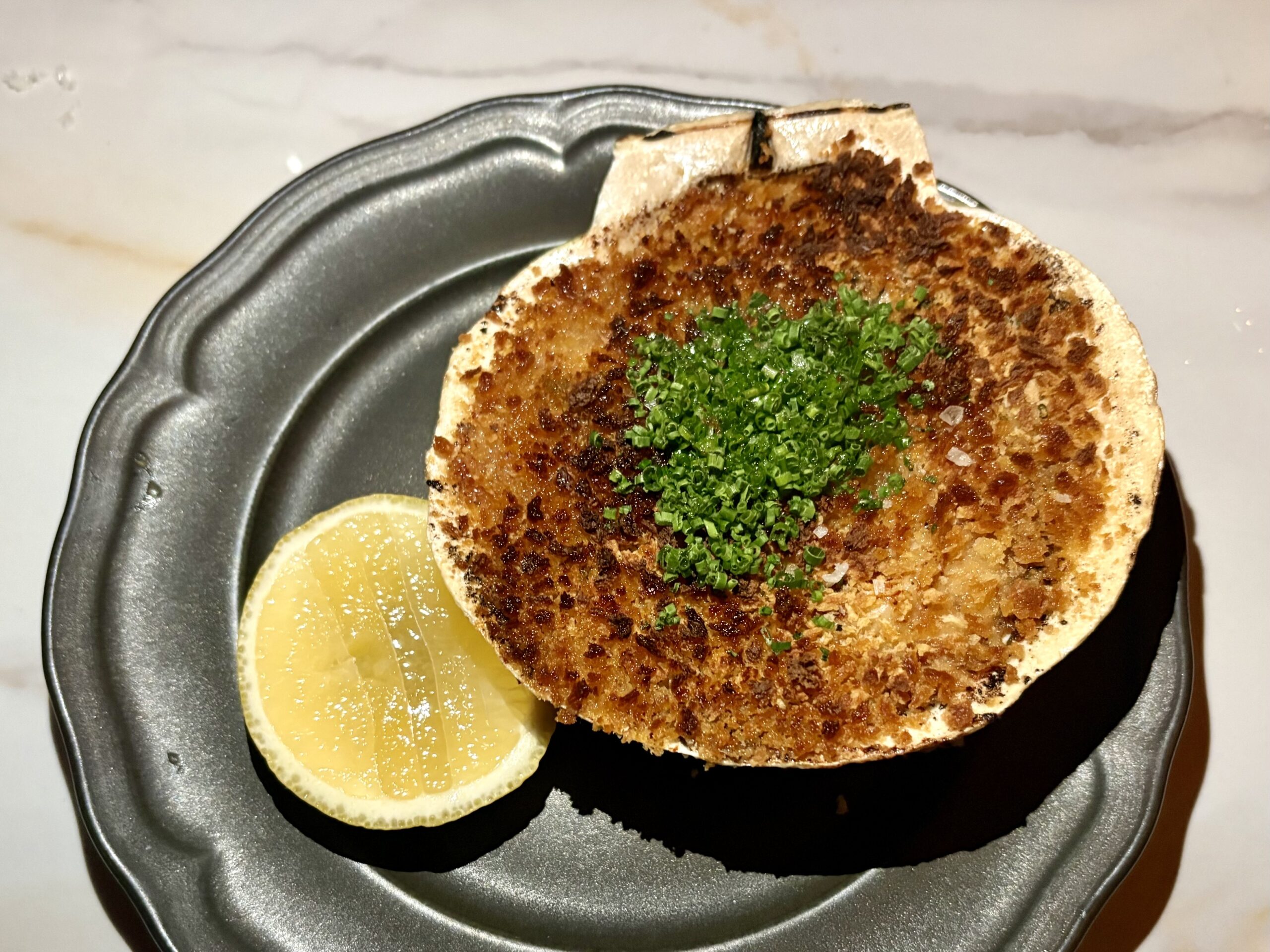 The scallop gratin at Fleur’s in Kensington suspends the sweet mollusks in a puree of celery root soubise and nixtamalized corn miso.