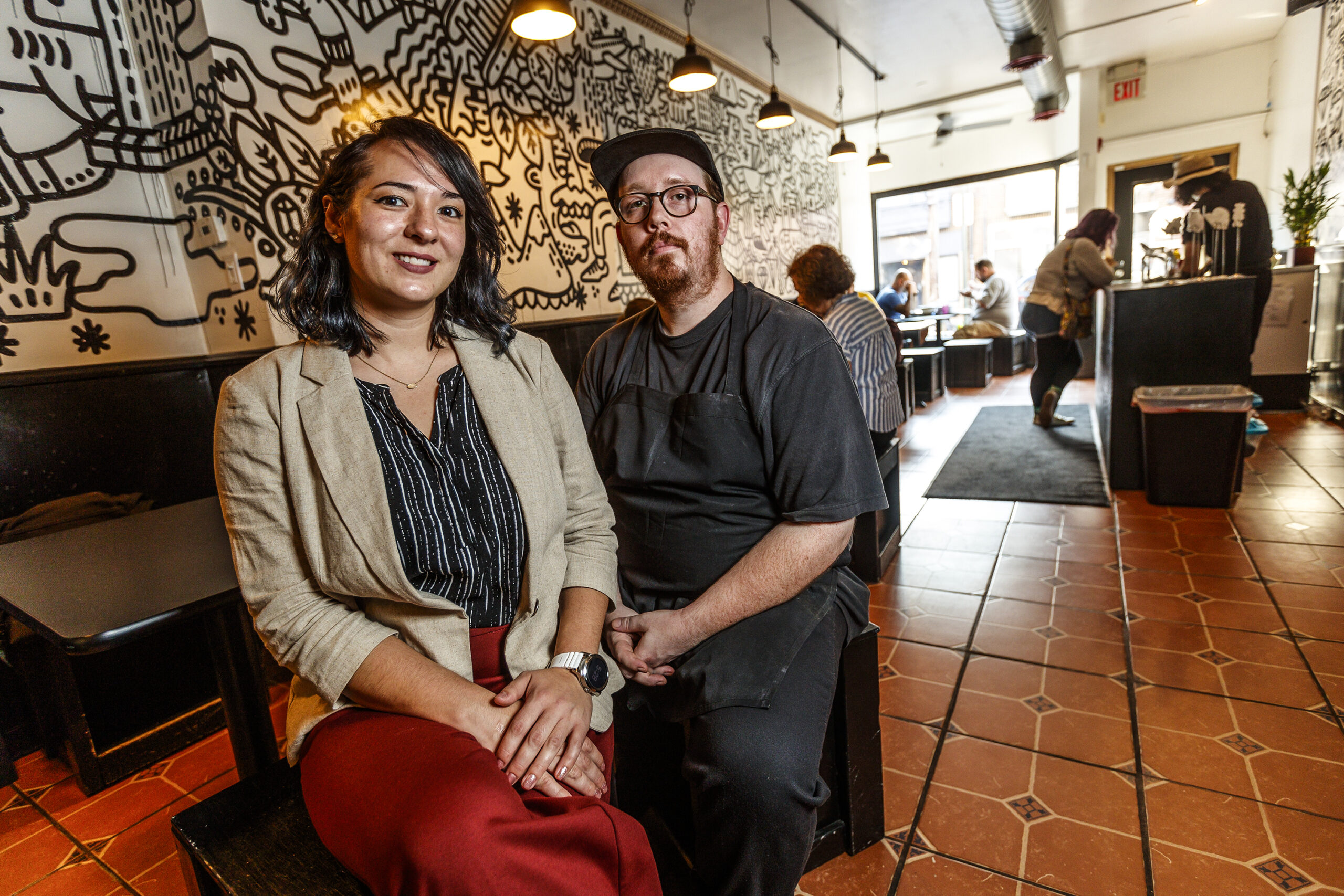 Lindsay Mariko Steigerwald (left) and Jesse Pryor co-owned Neighborhood Ramen on Third Street in Queen Village. They are pictured in their dining room shortly after opening in 2019.