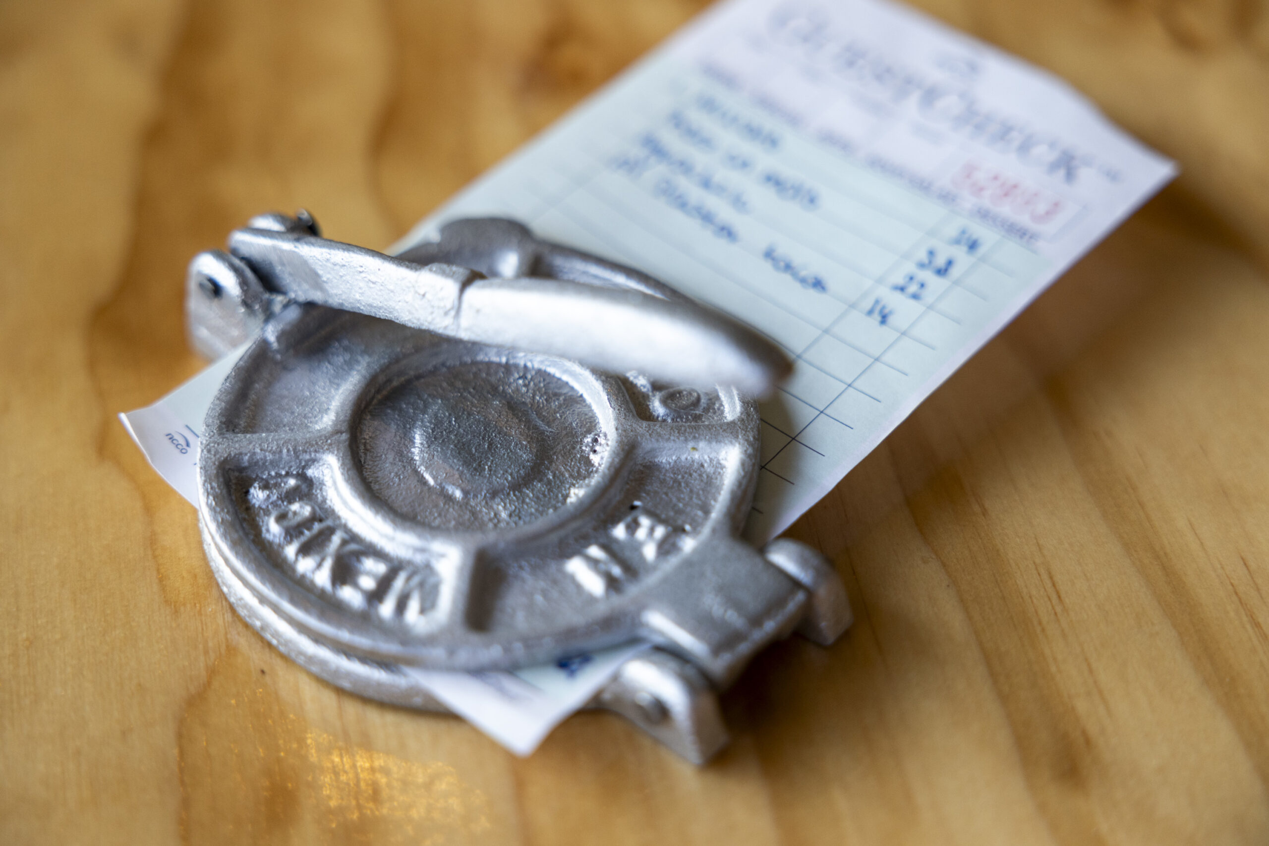 A tiny tortilla press used for the dinner checks at Tlali in Upper Darby Pa., on Thursday, Feb. 5, 2026.