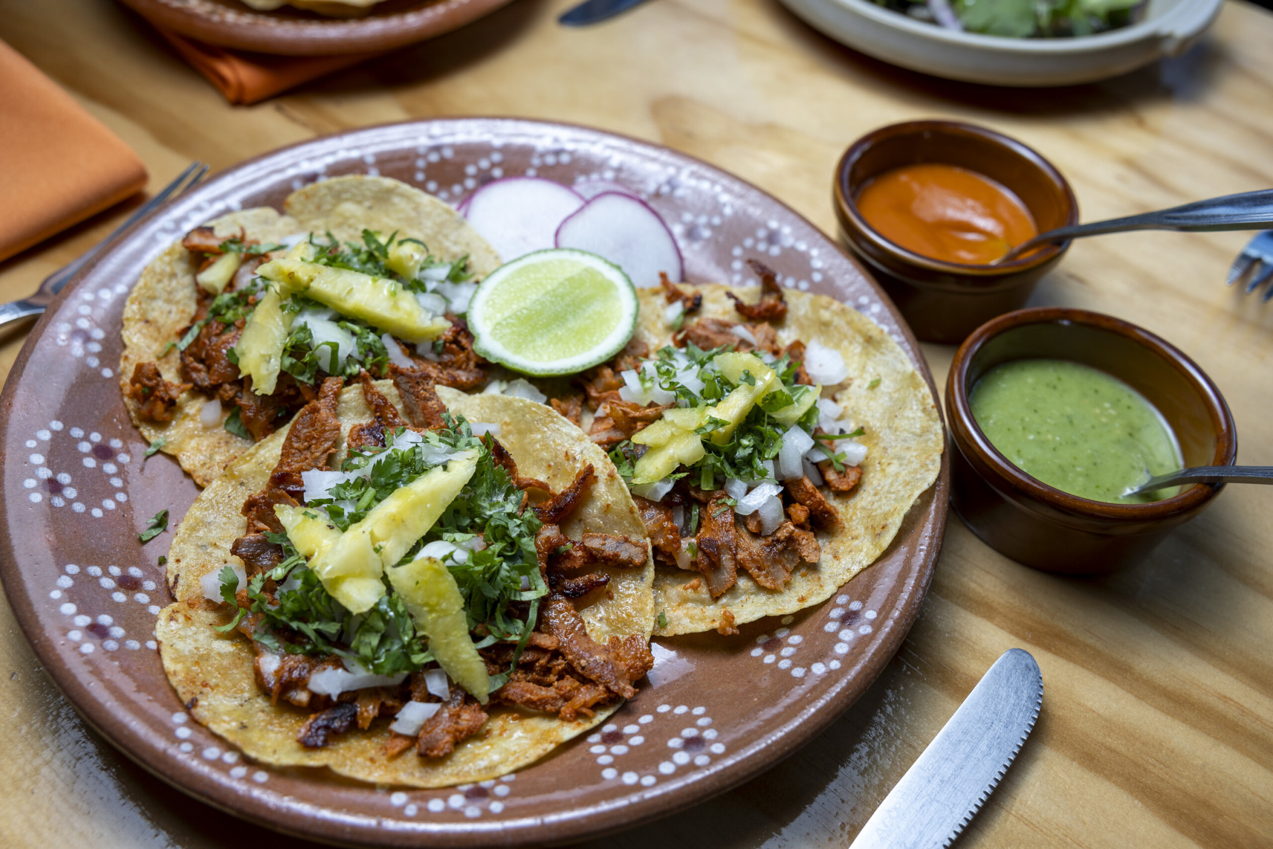 After diving much deeper into the menu, it’s easy to see why. Tlali is in many ways a sequel to the small restaurant the two brothersused to co-own in South Philadelphia, La Fonda de Teresita, which closed during the pandemic. But the Sandovals have both since continued to grow as chefs and have taken their pursuit of family flavors to the next level. That includes a tribute to their father, Don Guero, who ran a taqueria in Mexico City by the same name where Alberto got his first taste of kitchen life as a teen mincing mountains of onions and cilantro.