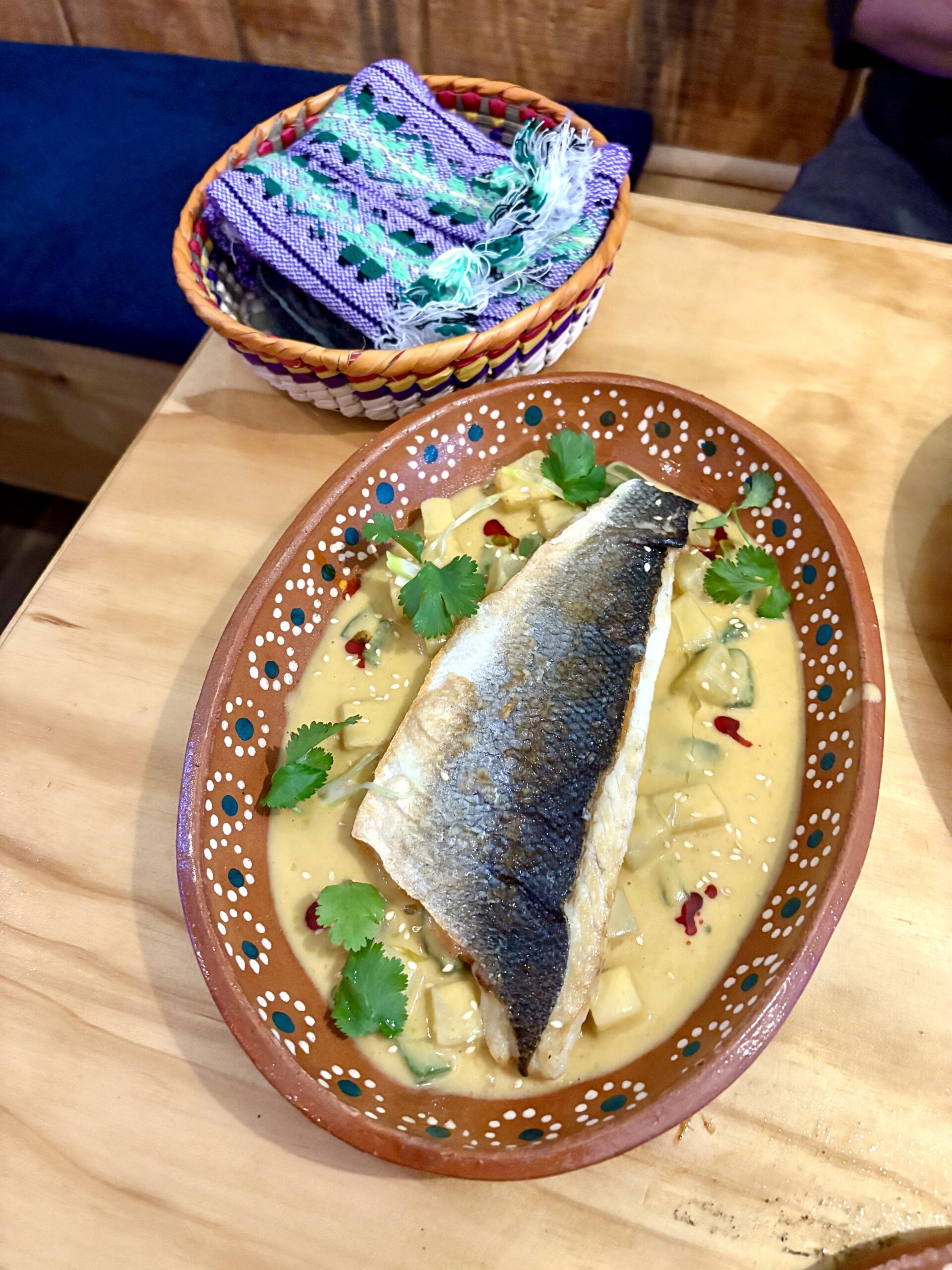 I was also intrigued to see Alberto and Efrain stretch their chef chops to reinterpret traditional flavors in inventive ways. That includes the michmole, which steeps a dried fish from Puebla in a tomatillo-chile salsa for deep marine flavor, then discards the bony remains for a golden sauce that gets topped with nopales and a gorgeous fillet of pan-roasted branzino (also lightly brined) to retain just enough of the traditional dish’s brackish edge.