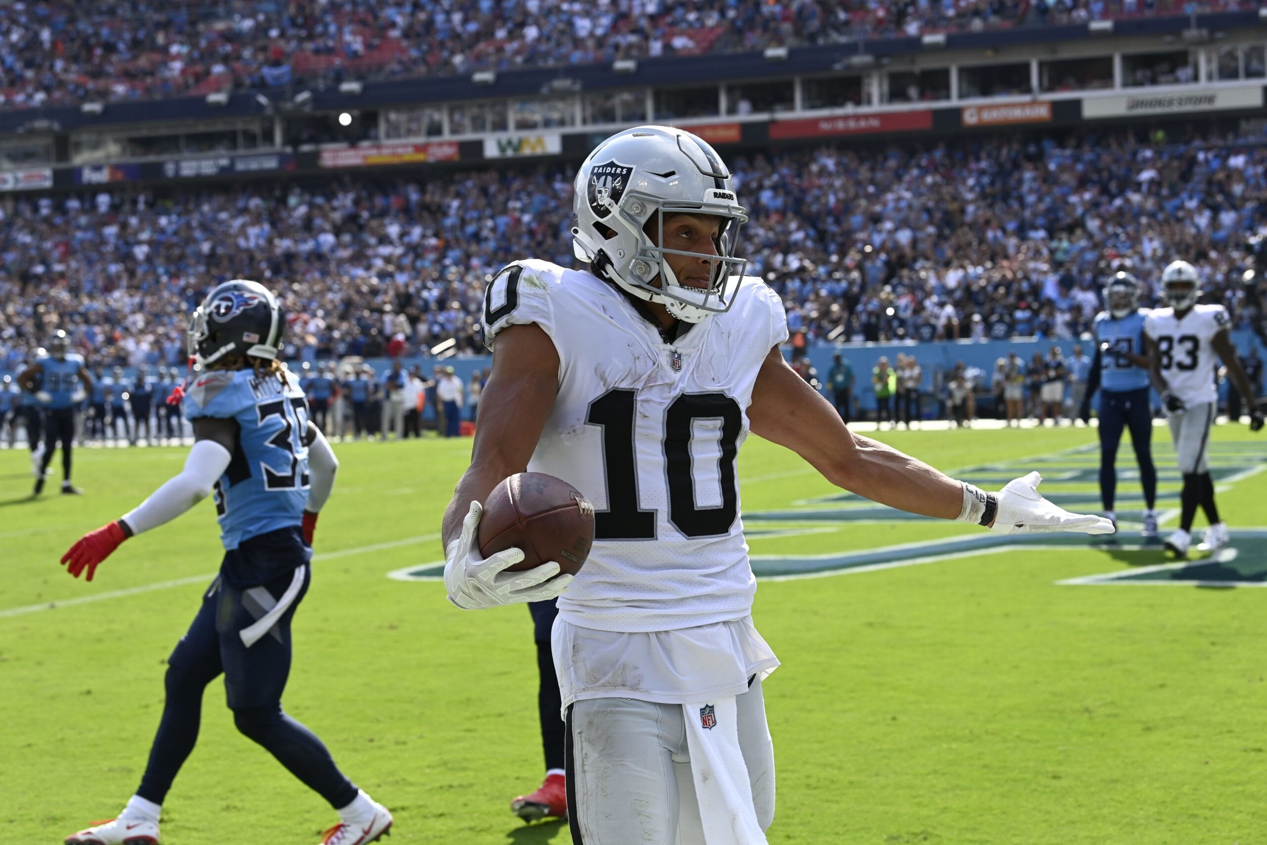 The connection Mack Hollins (10) made with coach Josh McDaniels when arriving to the Raiders would help the receiver down the line.