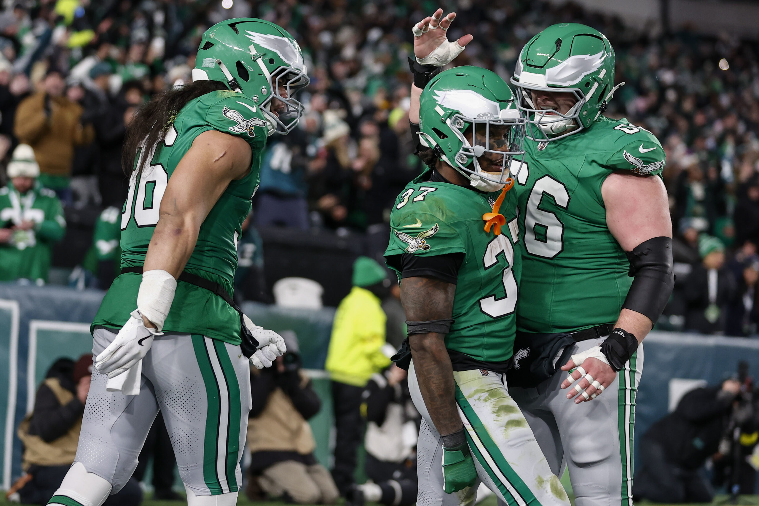 The other four O-linemen all had good moments in the run and pass protection: left guard Landon Dickerson, left tackle Jordan Mailata, right guard Tyler Steen and Johnson. The Tush Push made a triumphant return with two successful attempts.