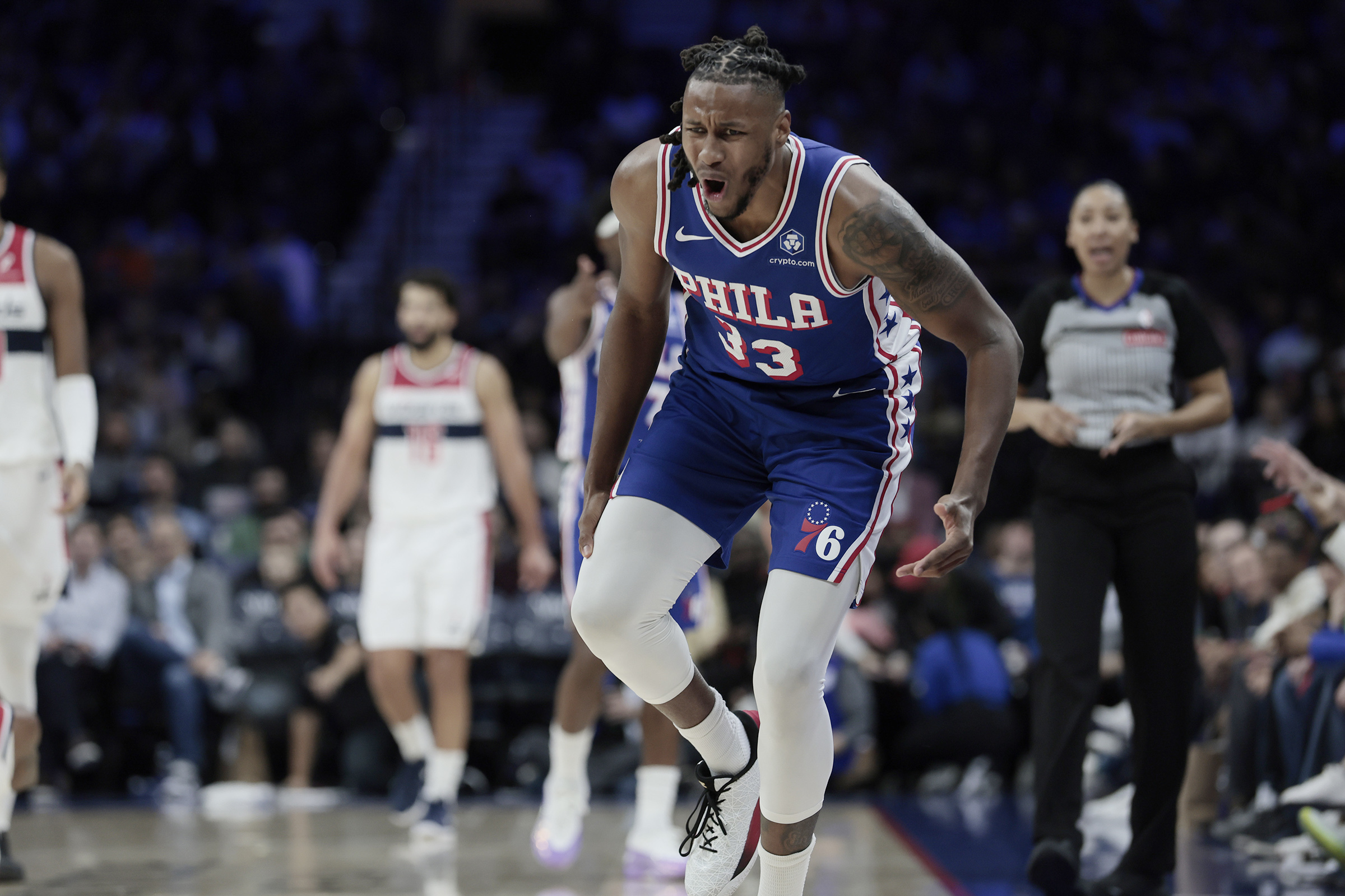 Now, George still has 19 games remaining on his suspension after violating the NBA’s antidrug policy. His absence on Monday, plus Barlow’s illness and Walker’s ineligibility, thrust fellow two-way player MarJon Beauchamp into his first action as a Sixer.