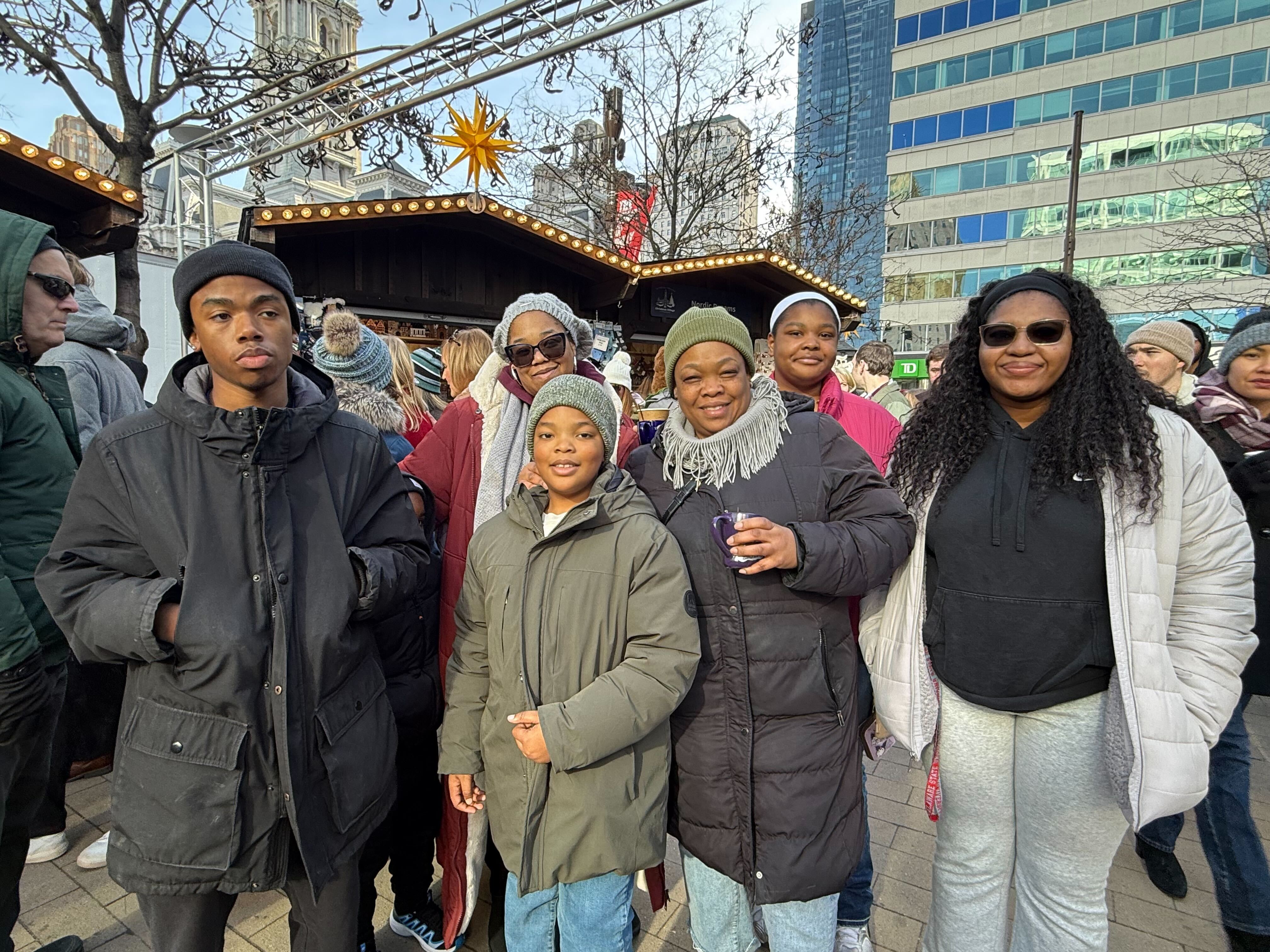Paulette Franklin, 56, and her grandson, 10-year-old Nathan Dockett with their family at Christmas Village