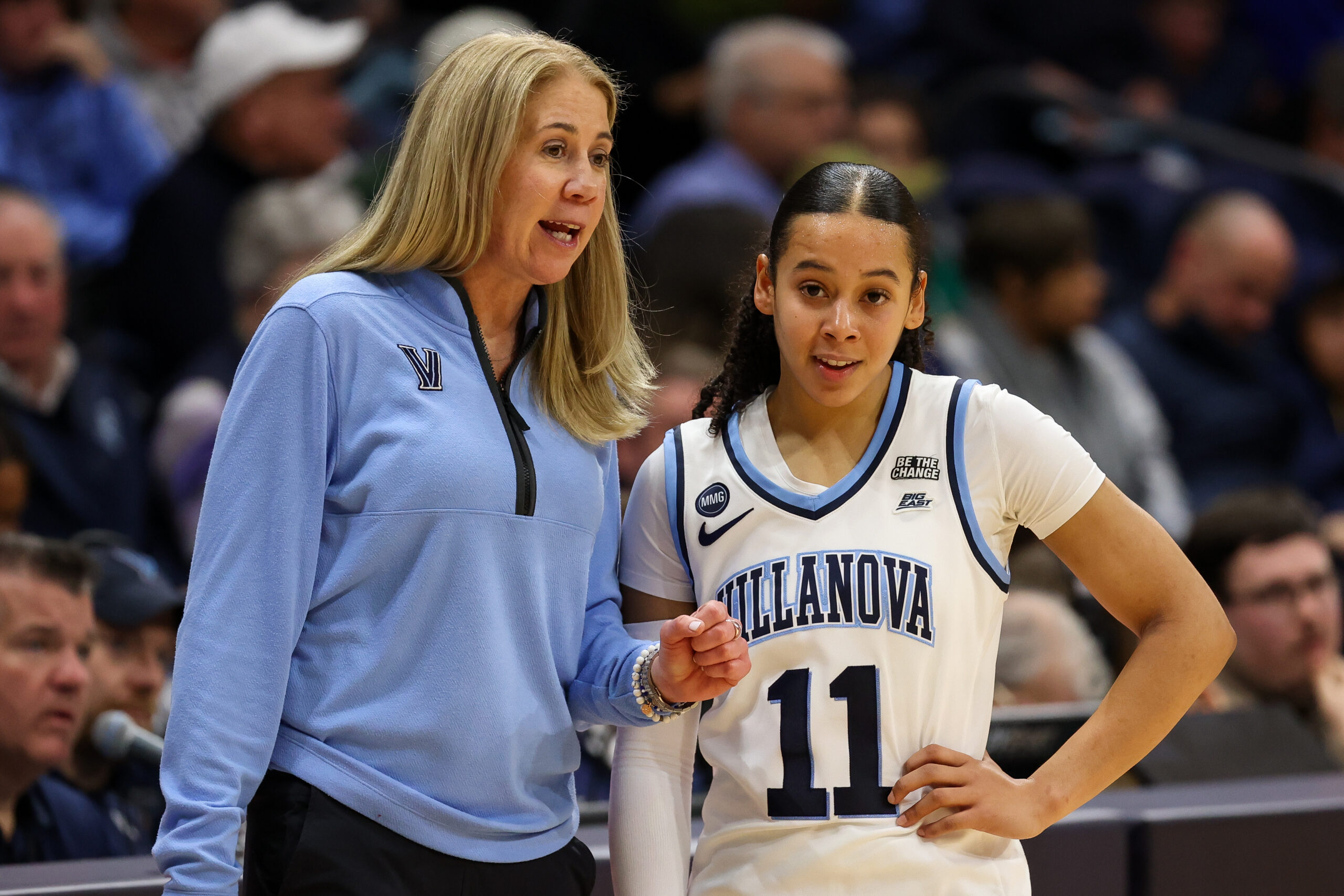 Villanova coach Denise Dillon with her star guard, Jasmine Bascoe.