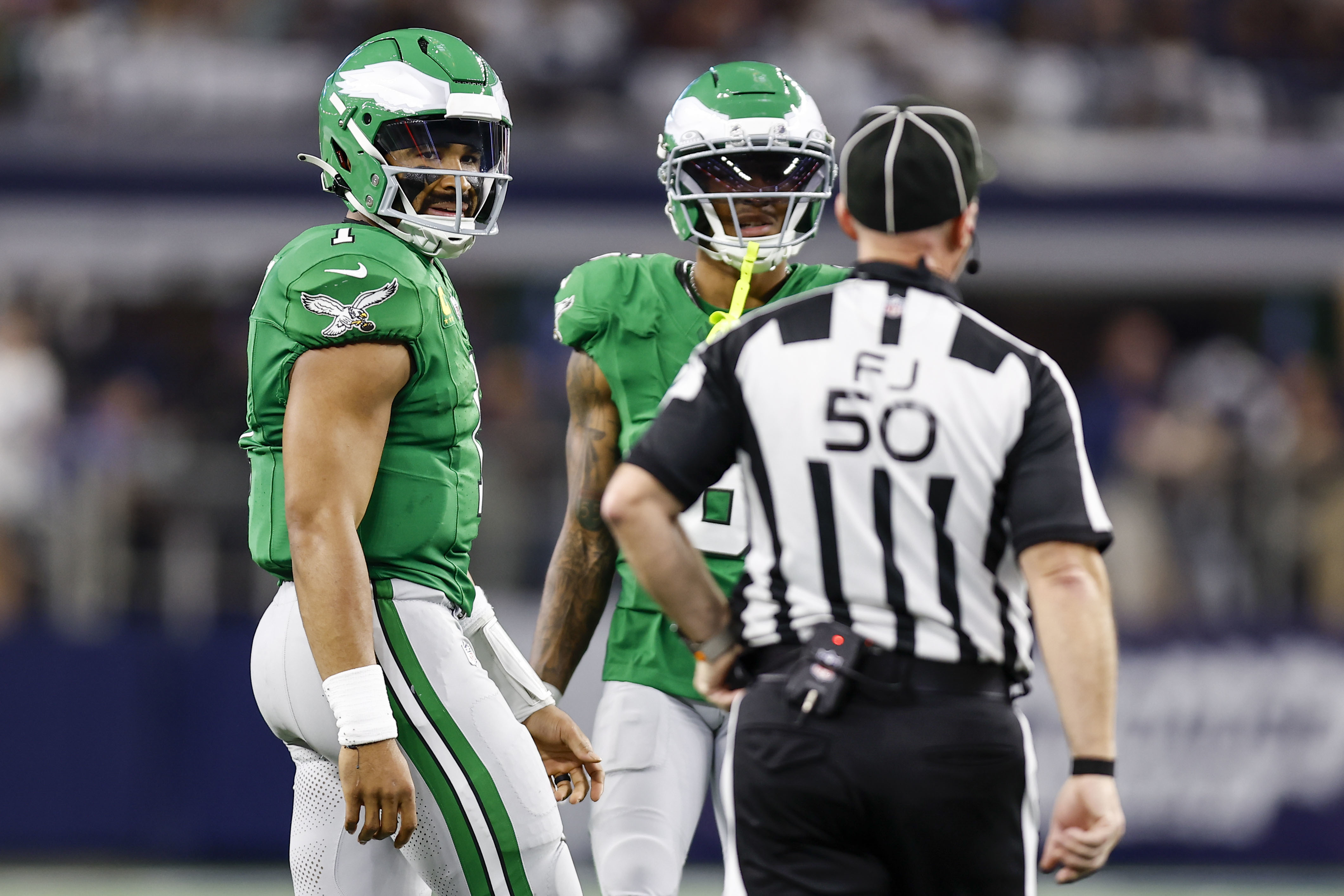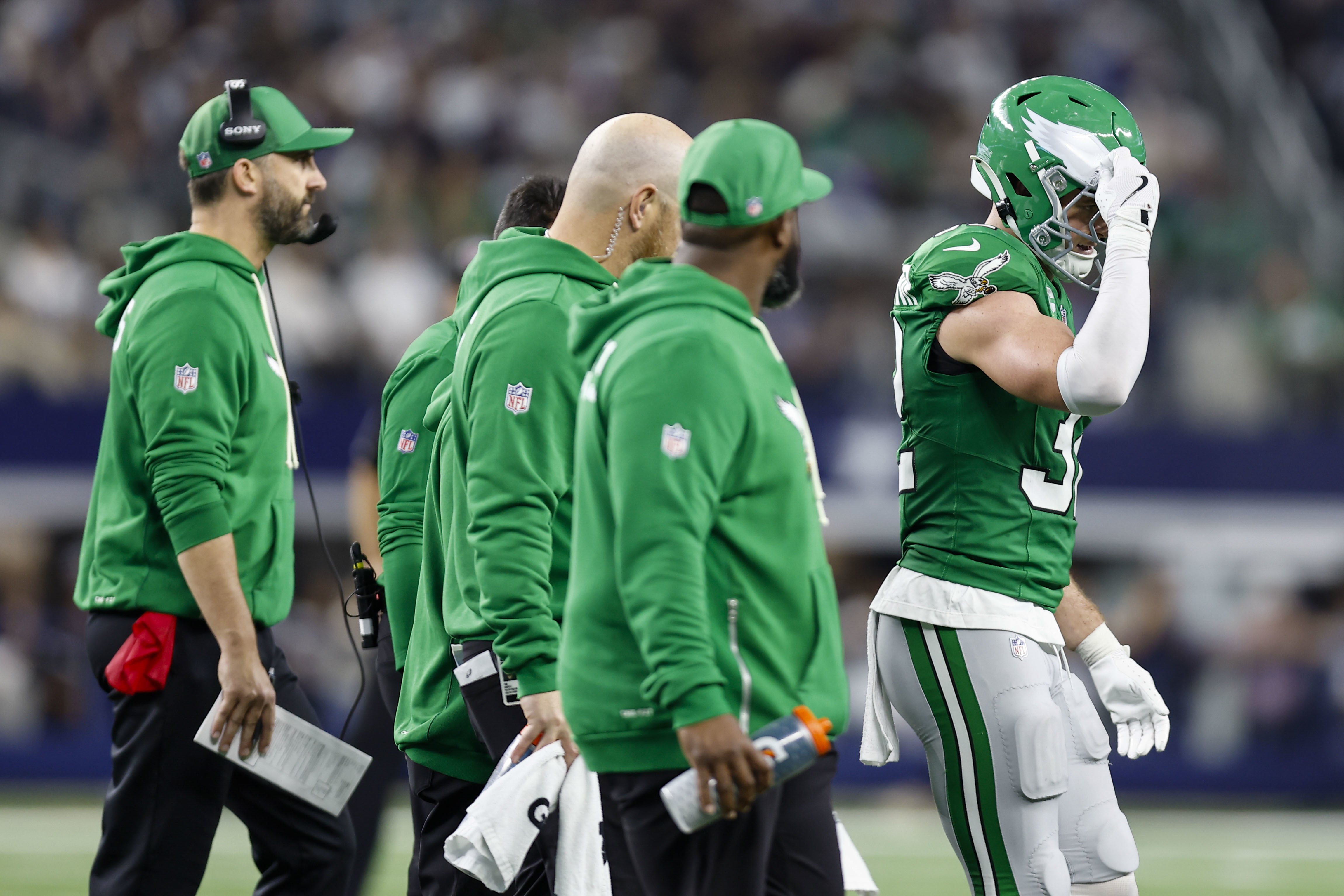 The Eagles also lost both safeties. Reed Blankenship left the game first with a thigh injury, and later, Drew Mukuba was injured on the final Dallas drive. Mukuba had to be helped into the locker room by Dom DiSandro and a team trainer and couldn’t put weight on his right foot. He was later seen in a boot and using crutches.