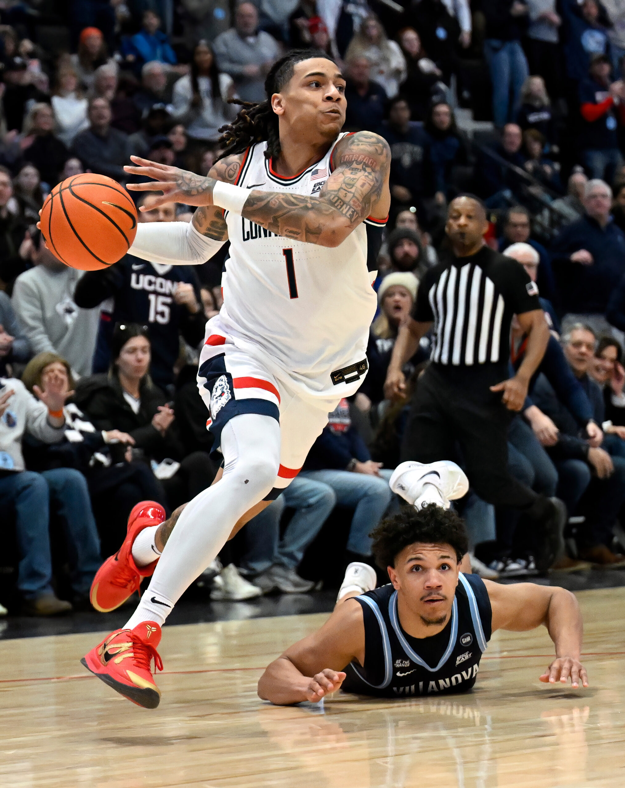 In the end, UConn made the plays when it mattered. Solo Ball, who led all scorers with 24 points, hit arguably the game’s biggest shot, a three-pointer with two minutes left in overtime that turned a one-point Villanova lead into a two-point deficit.