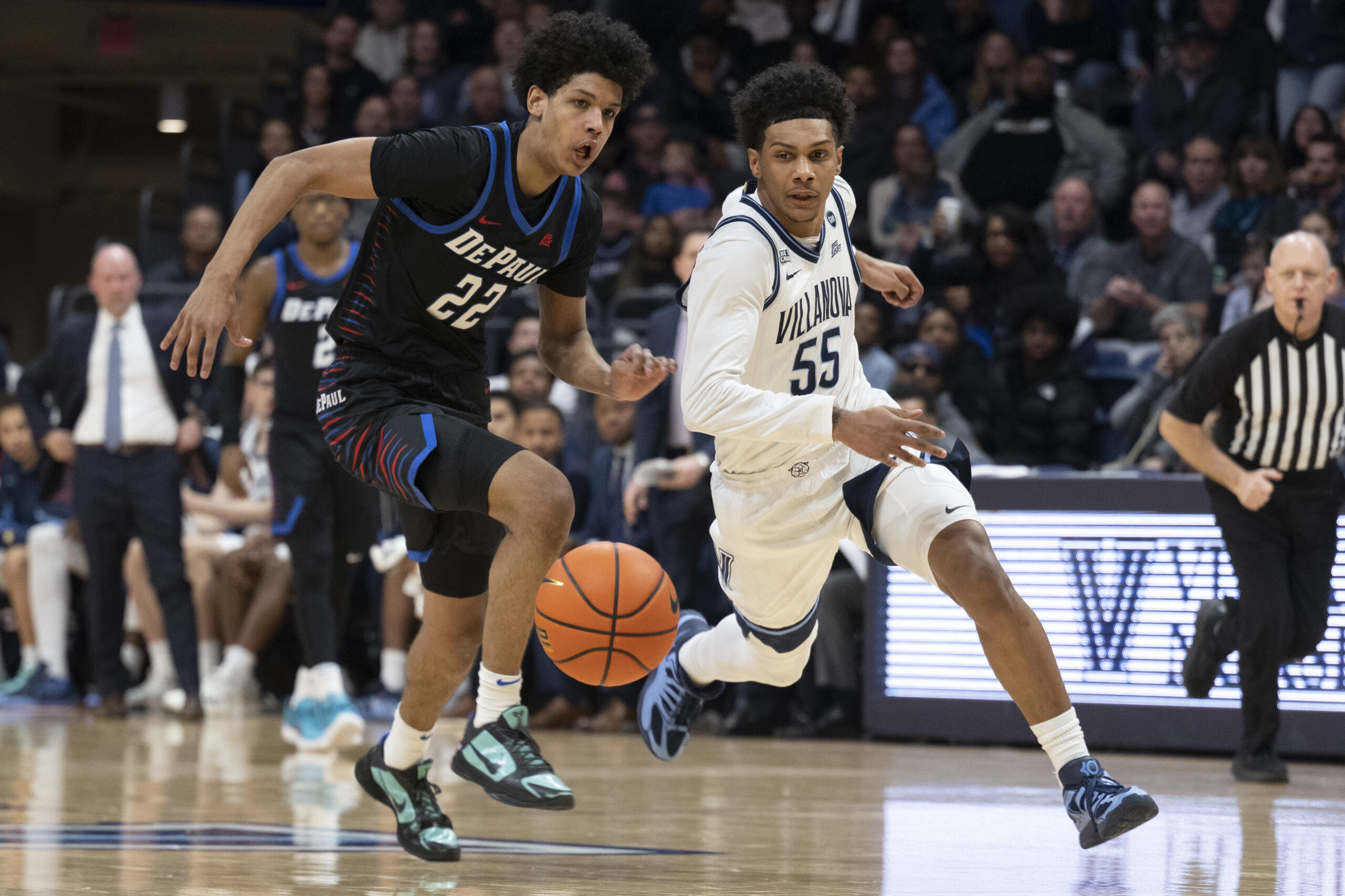 Villanova’s Acaden Lewis chasing a loose ball against DePaul. He is averaging 12 points a game.