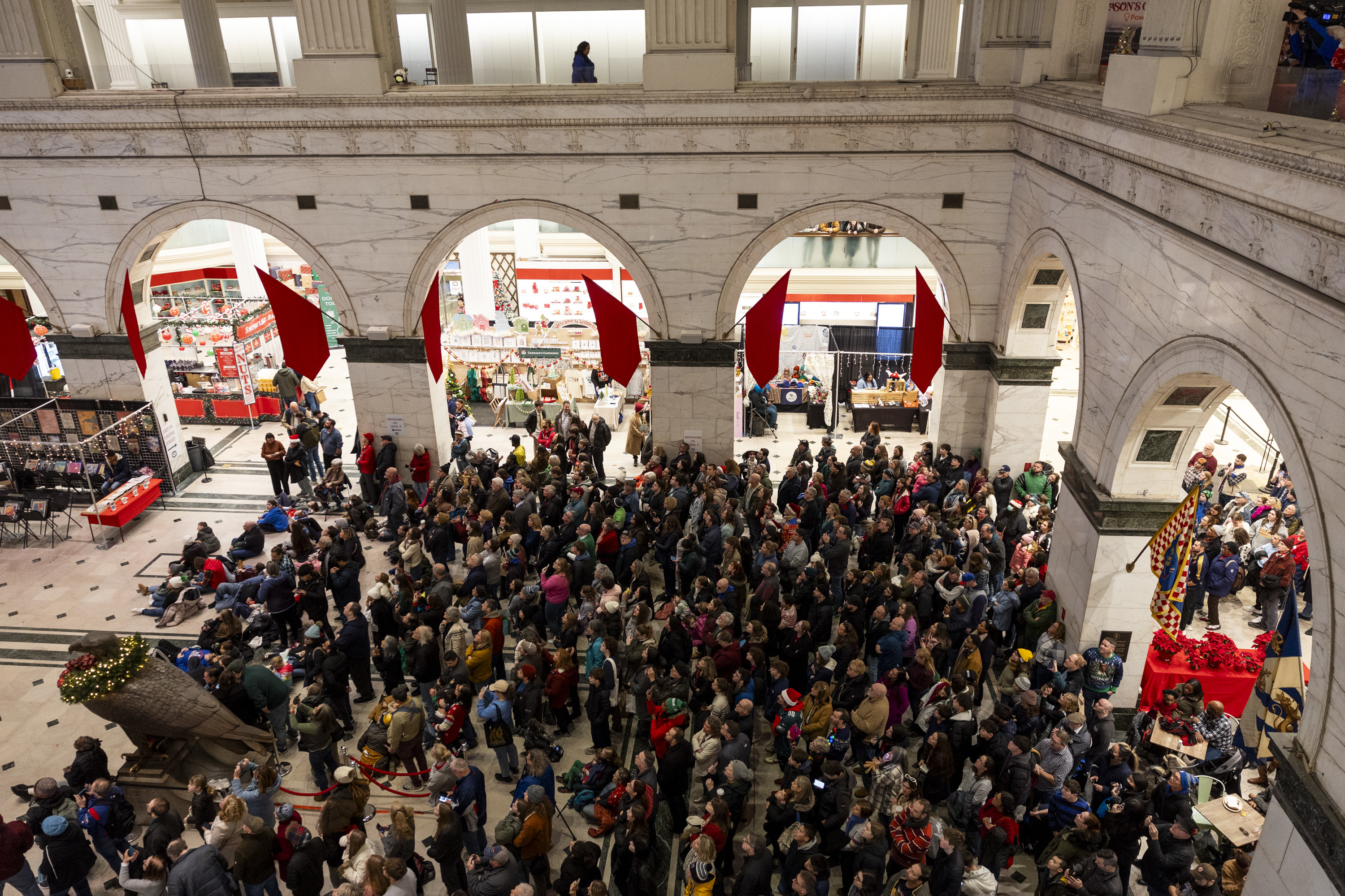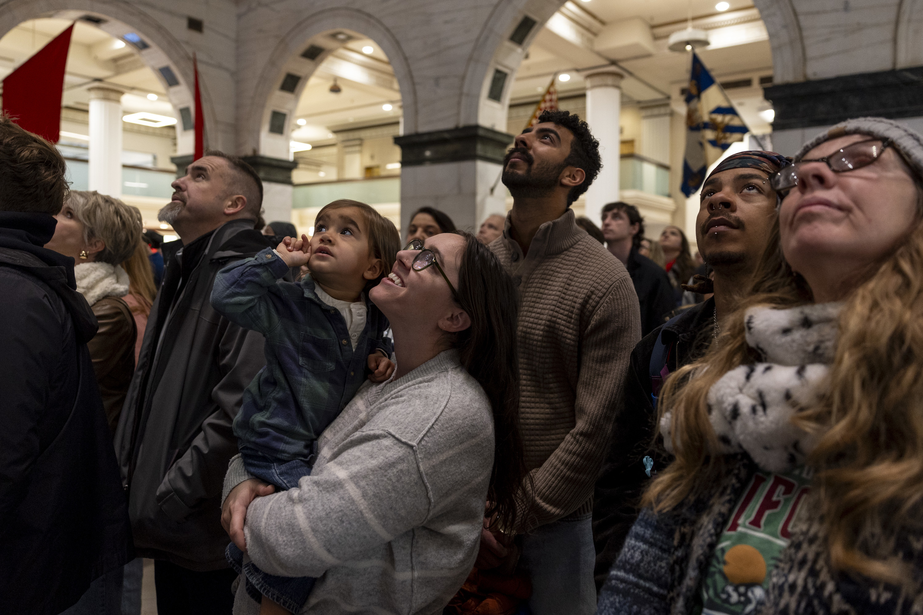 That took place a short while later, as the band performed its routine under the stars of Market Street. Braving the cold and the crowds, the couple strutted to the front of the line, each holding aloft signs saying, “I do.”