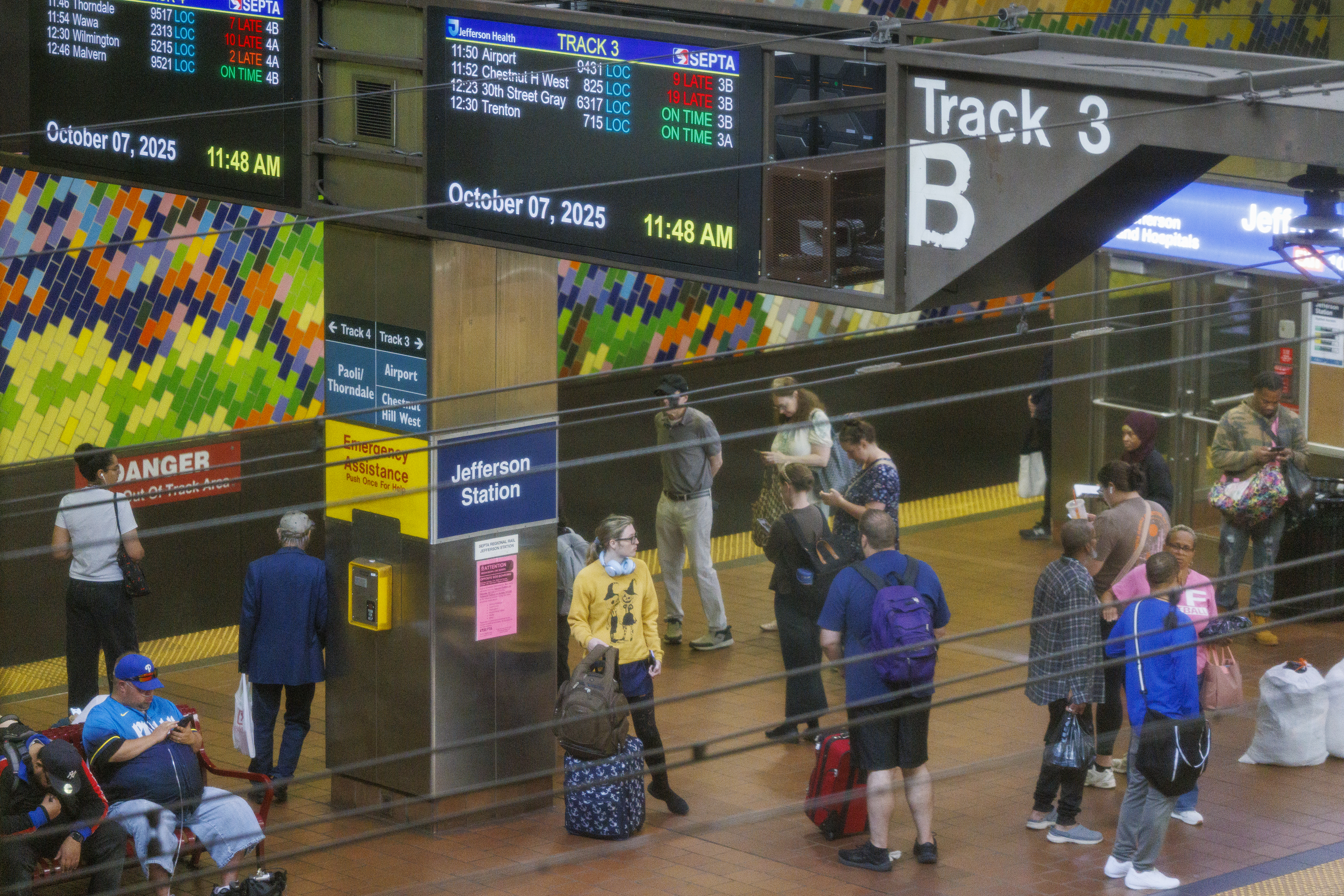Commuters waiting for SEPTA Regional Rail at Jefferson Station on Oct. 7.